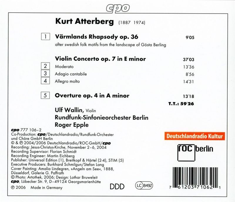 Kurt Atterberg (1887-1974): Violinkonzert op.7 - CPO 076120371
