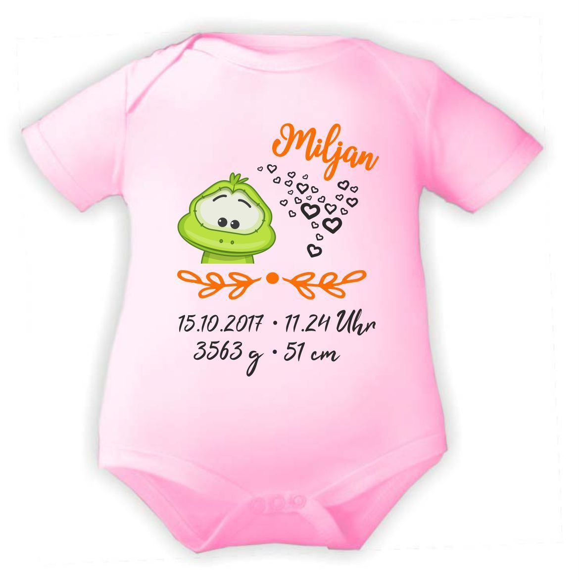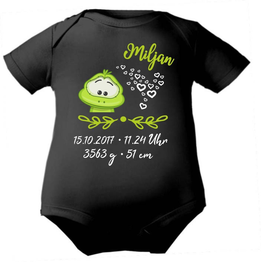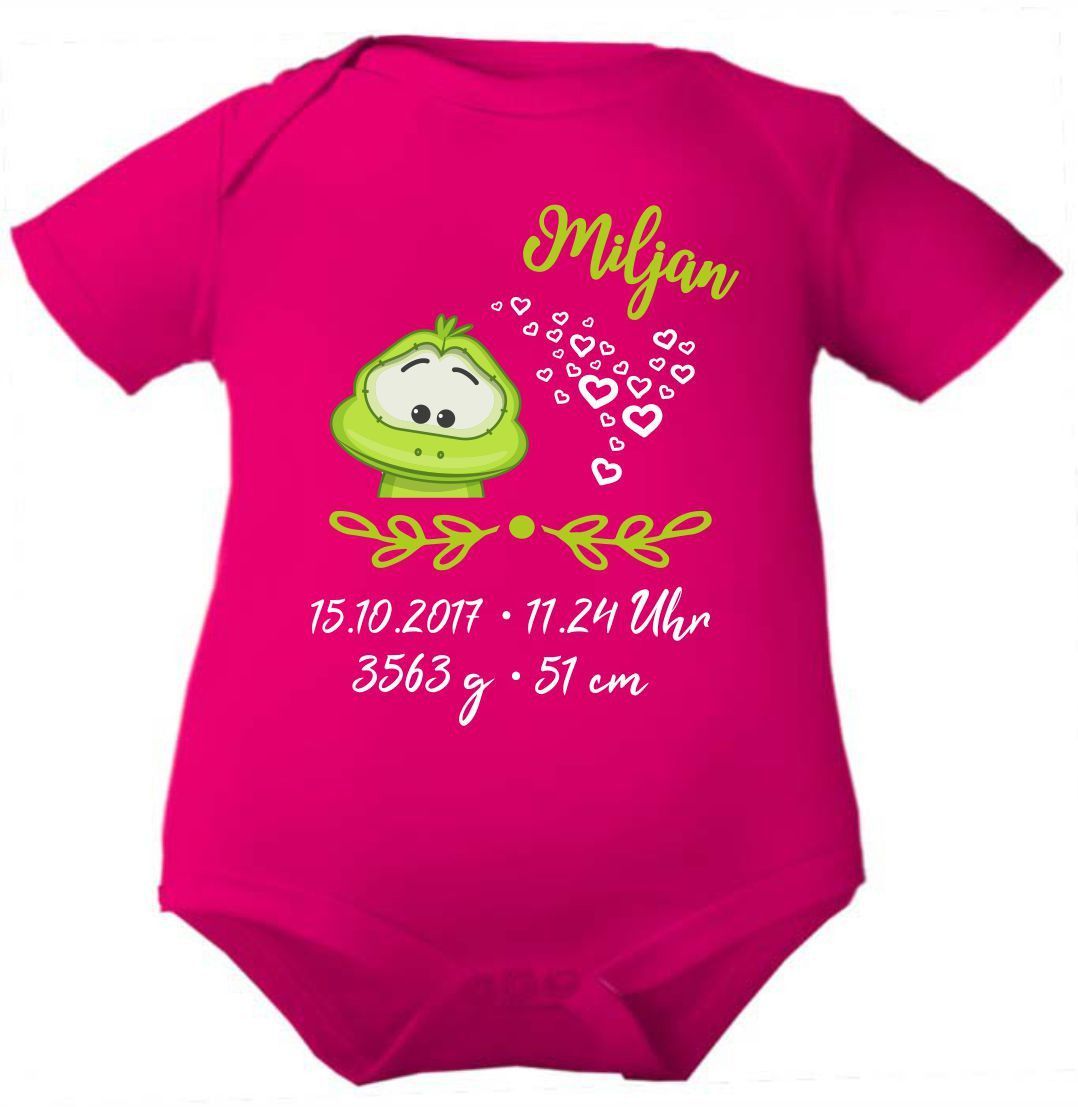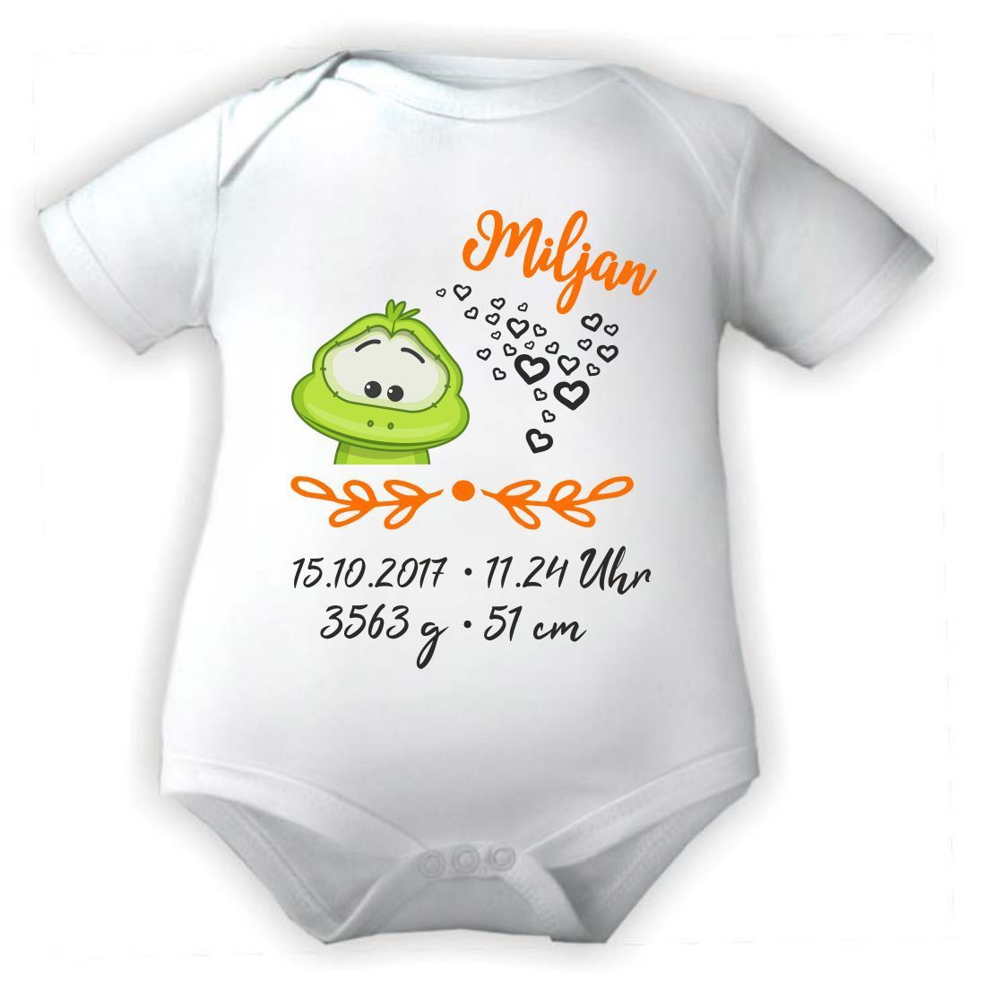 Kurzarm Baby Body personalisiert mit Motiv FROSCH und Geburtsdaten