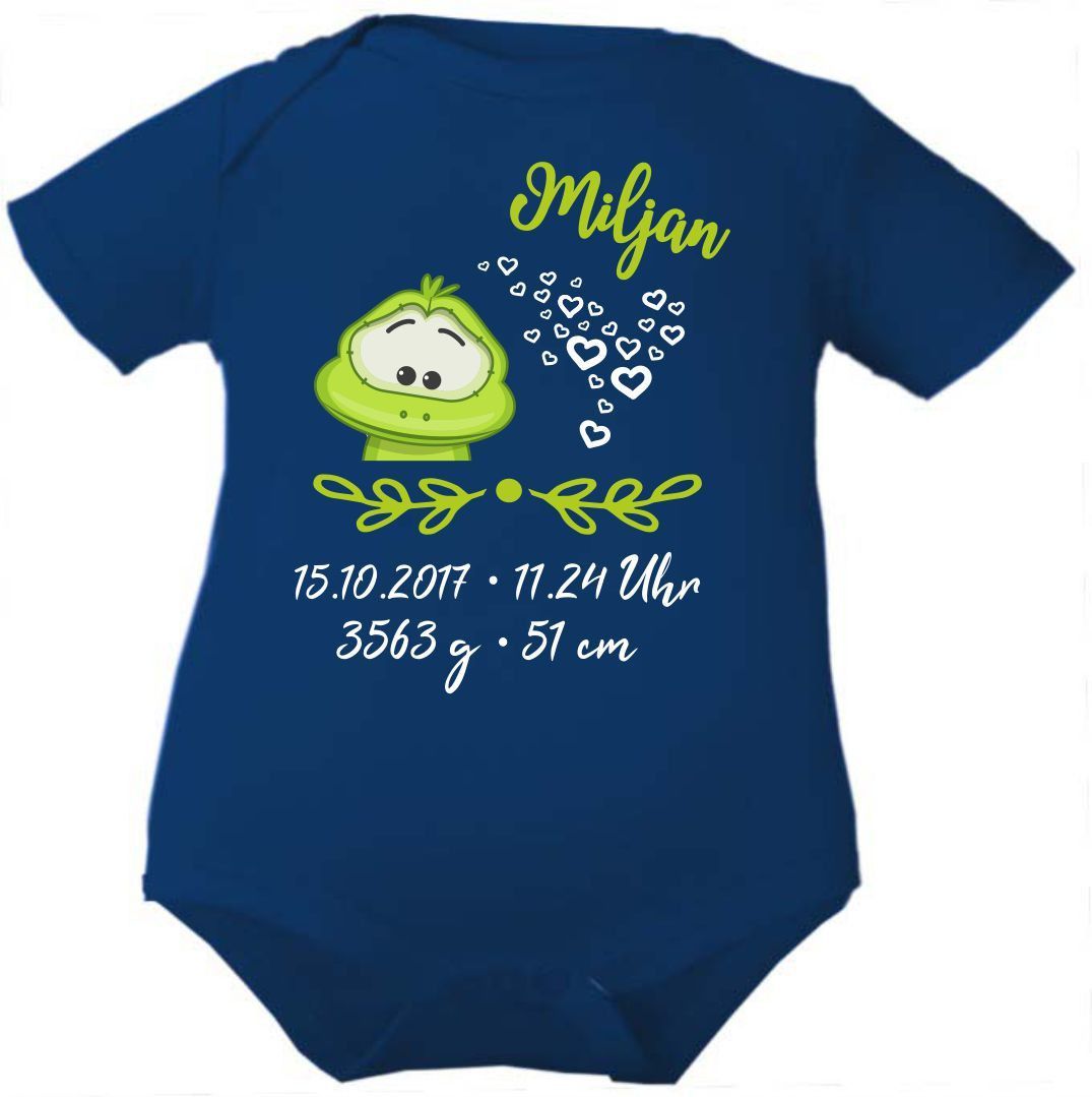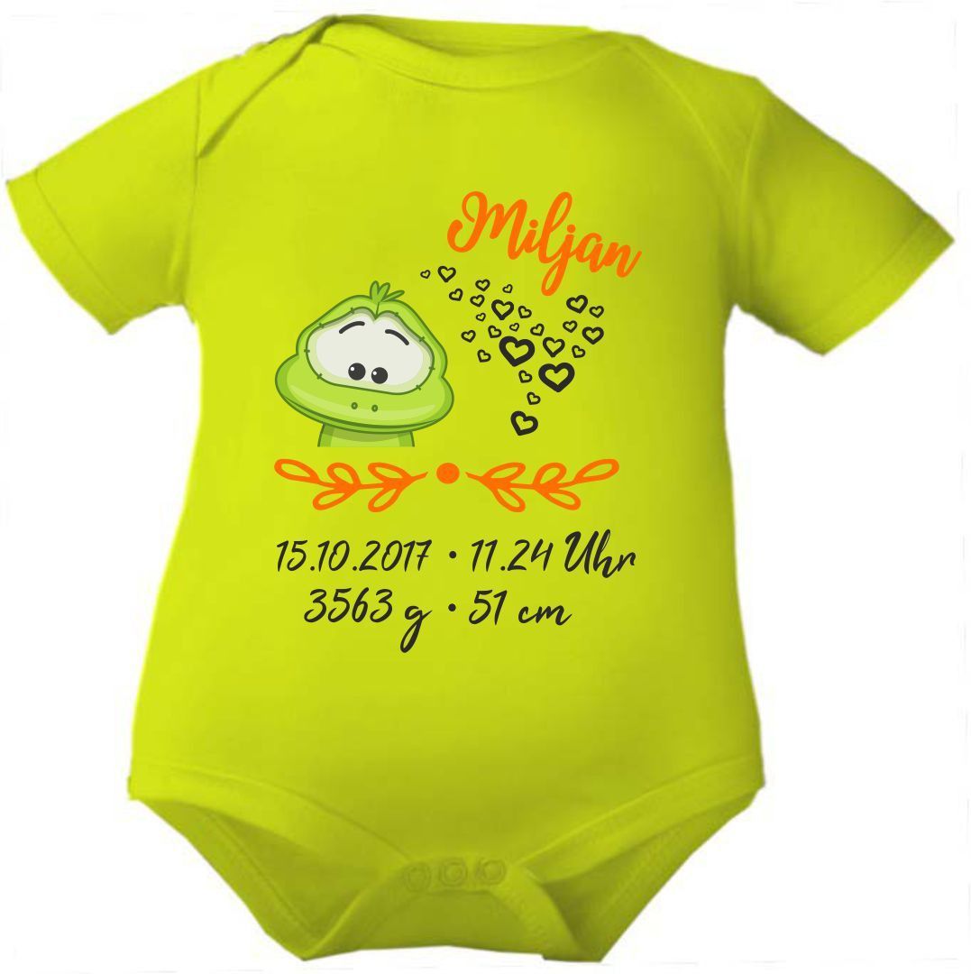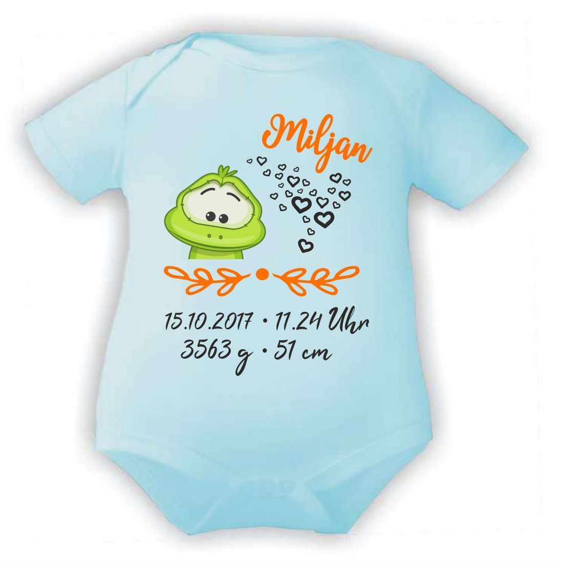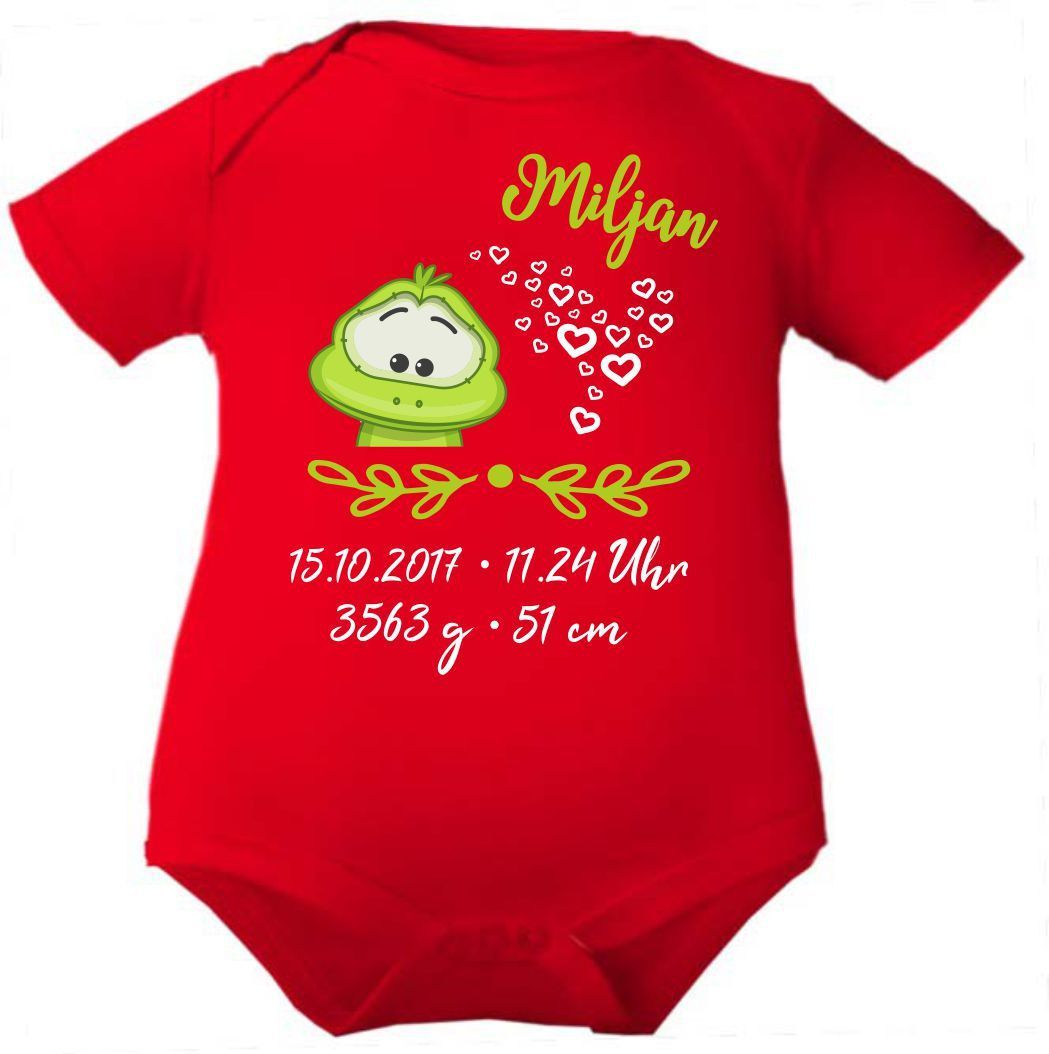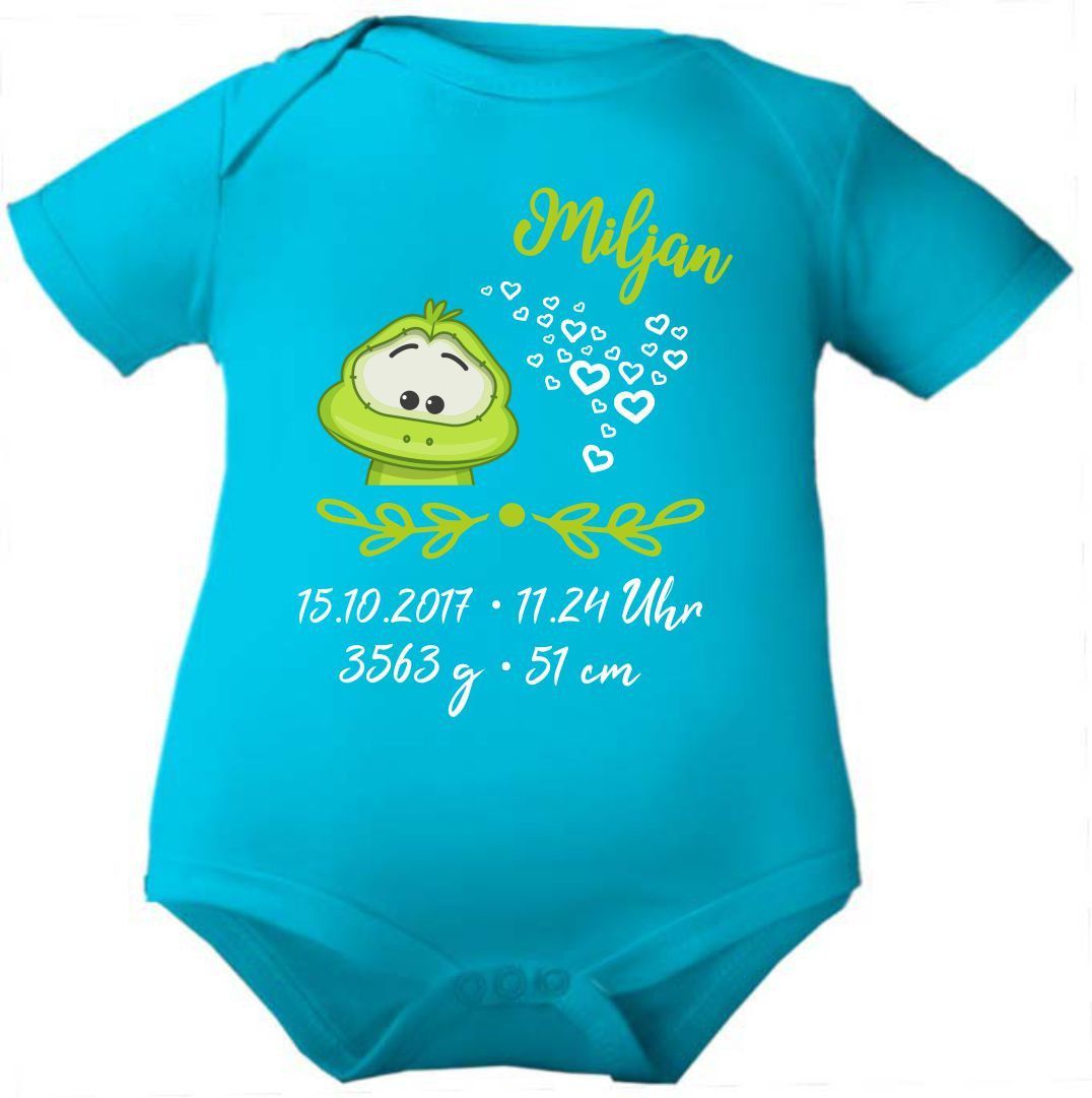 Kurzarm Baby Body personalisiert mit Motiv FROSCH und Geburtsdaten