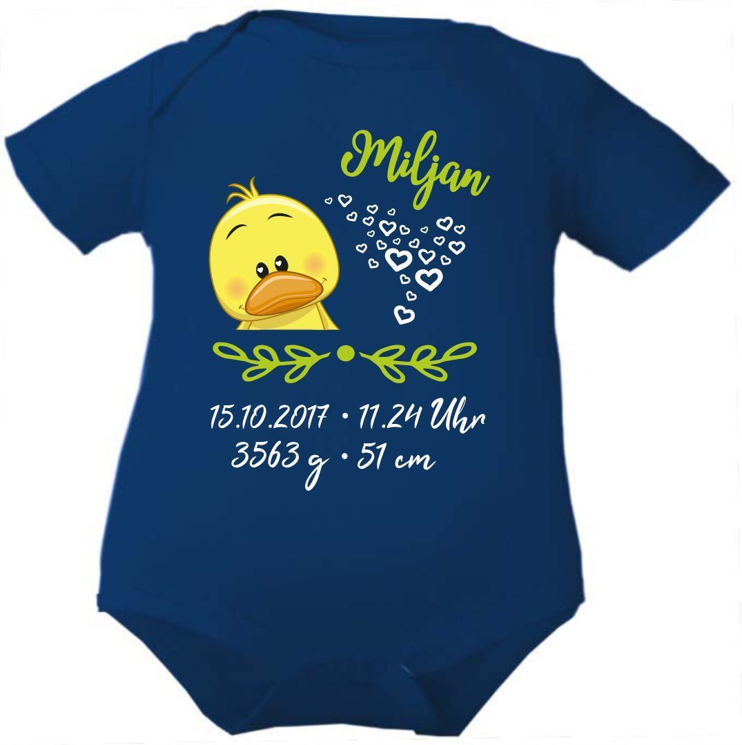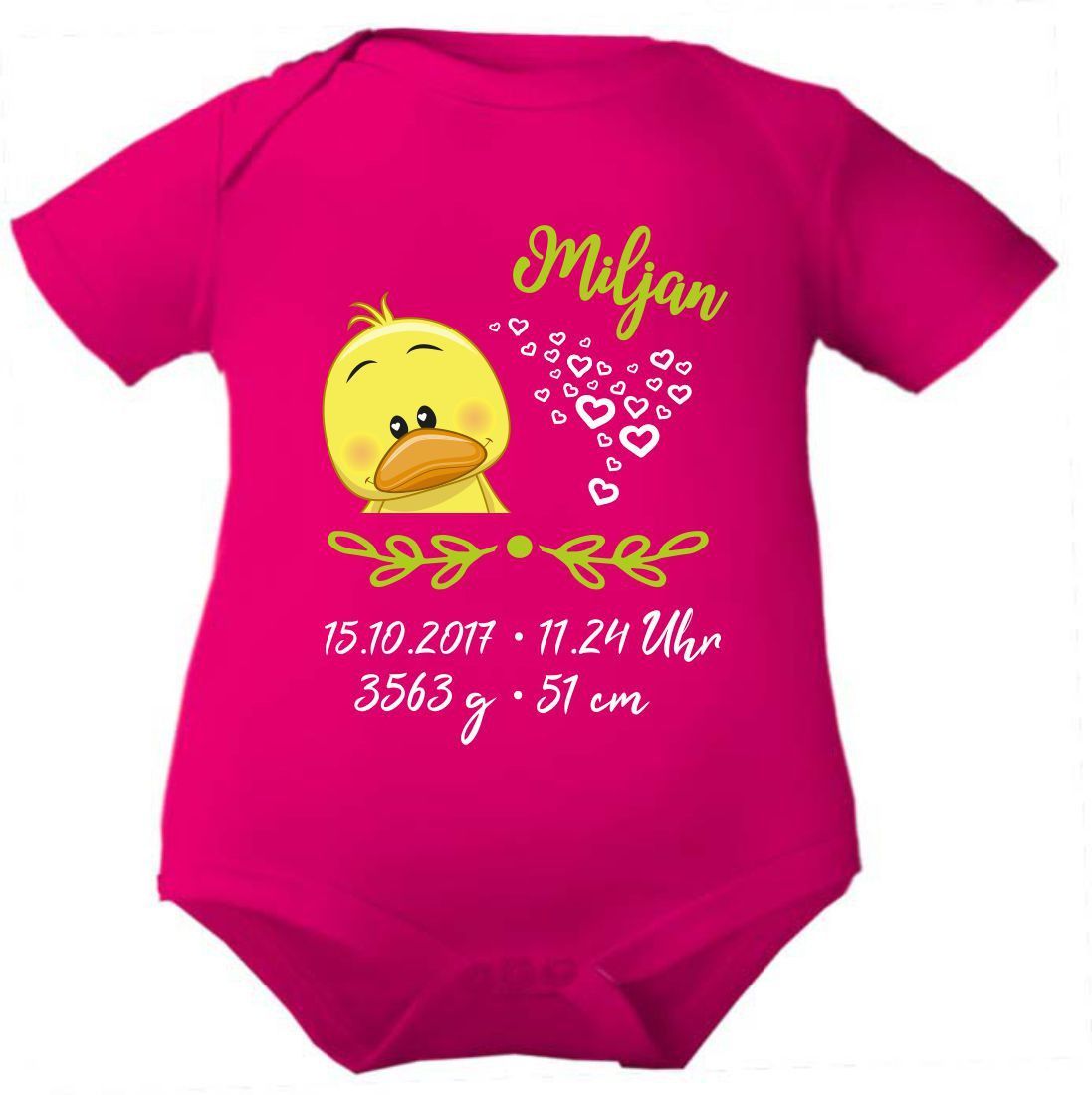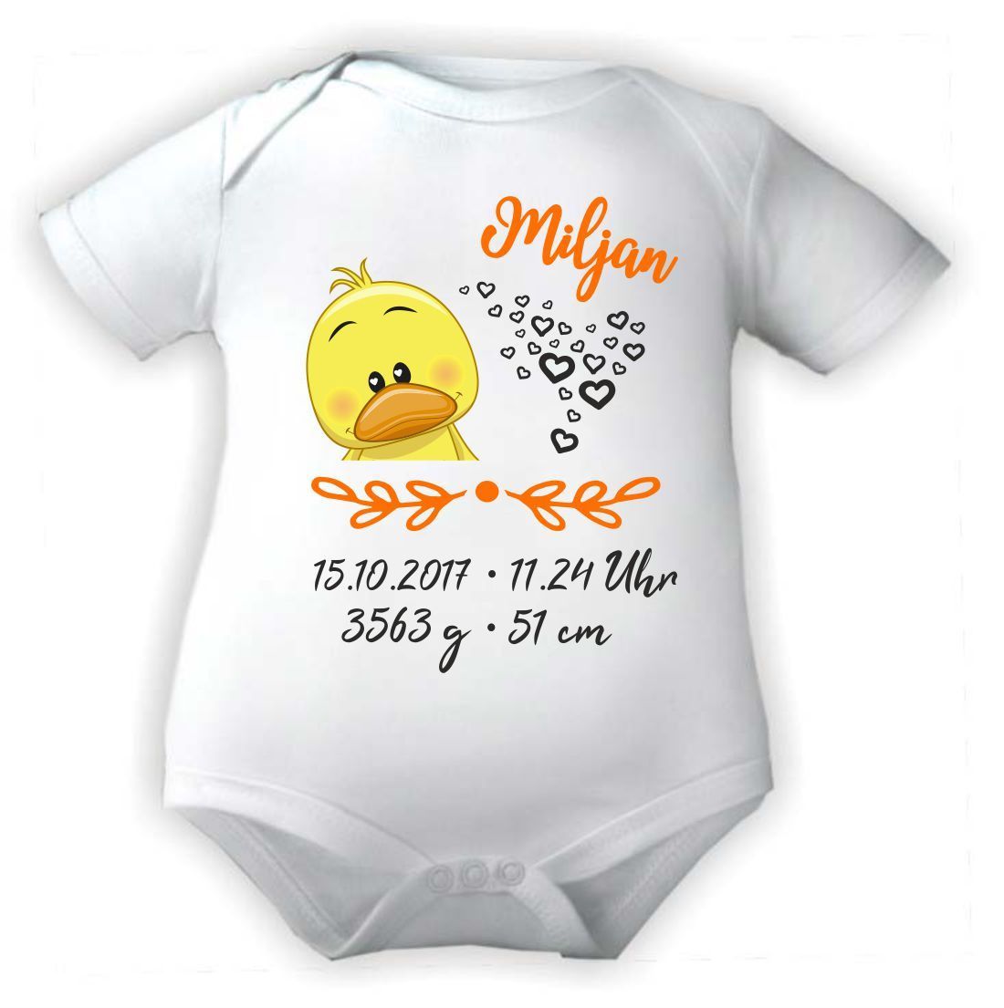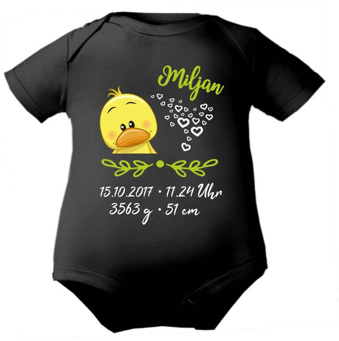 Kurzarm Baby Body personalisiert mit Motiv KÜKEN und Geburtsdaten