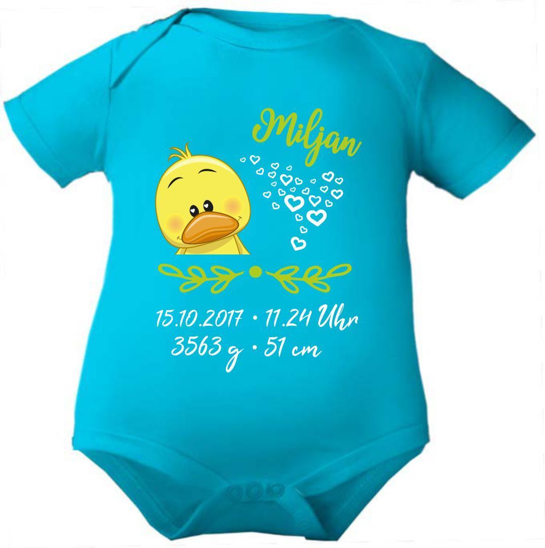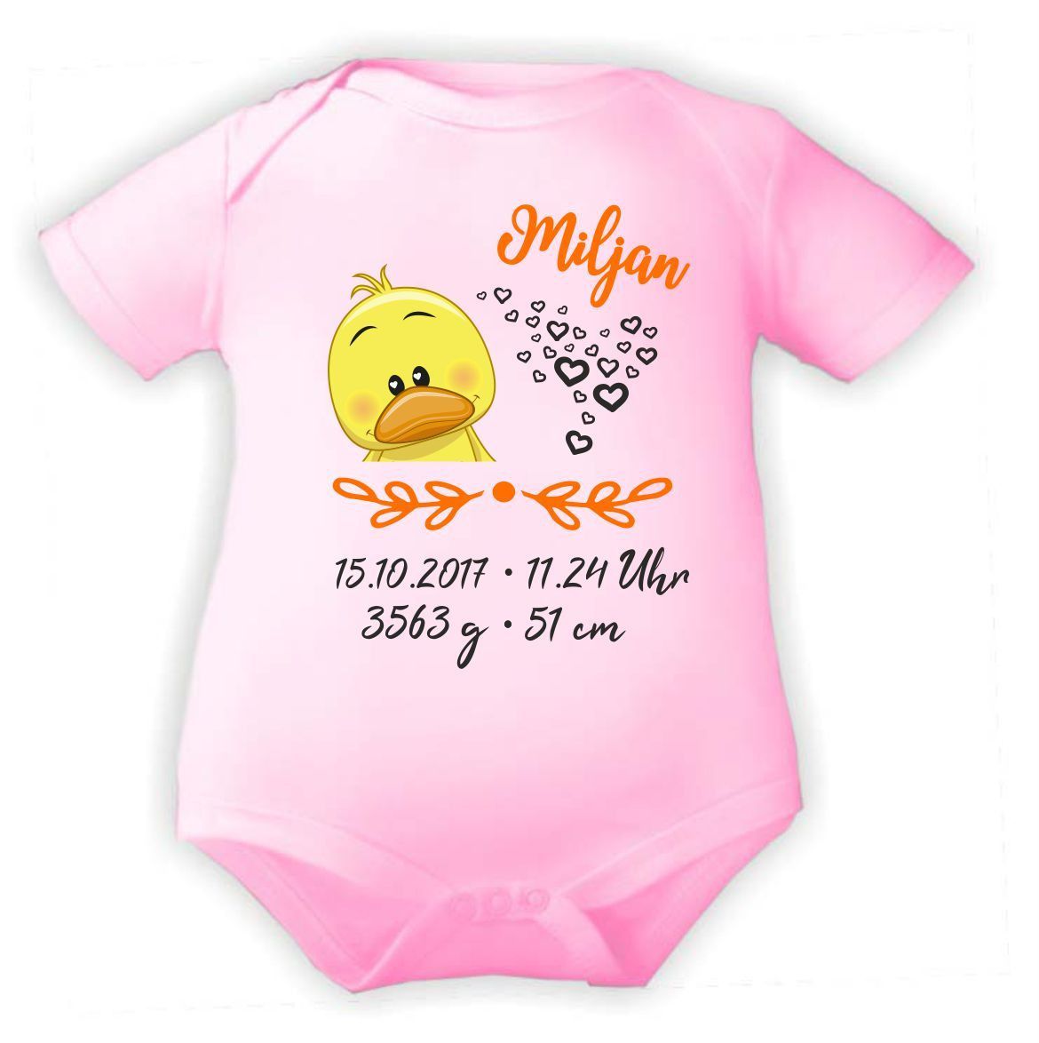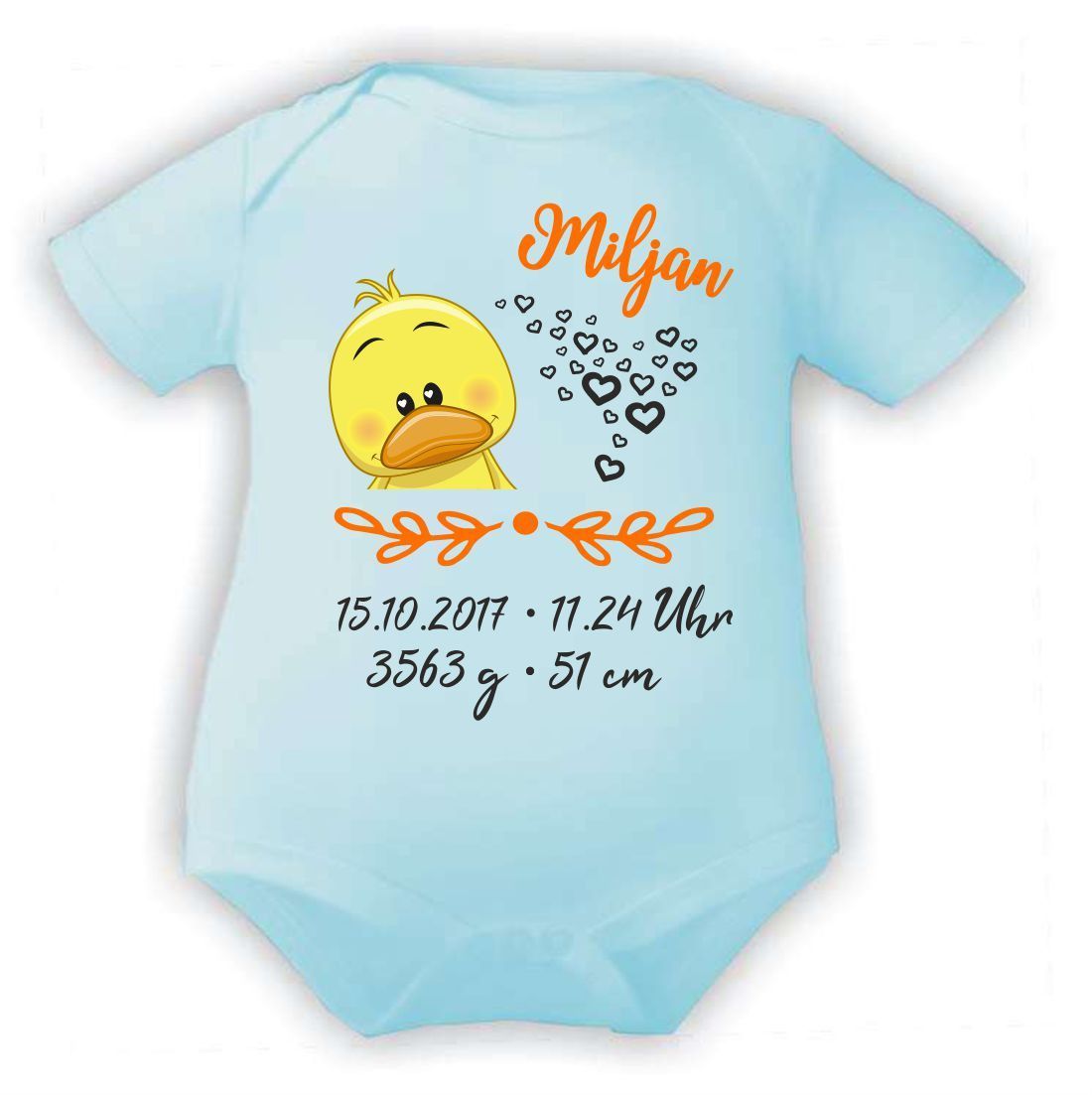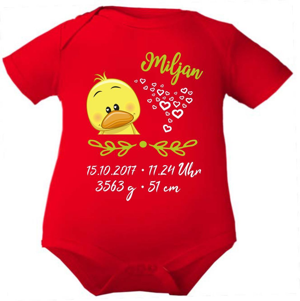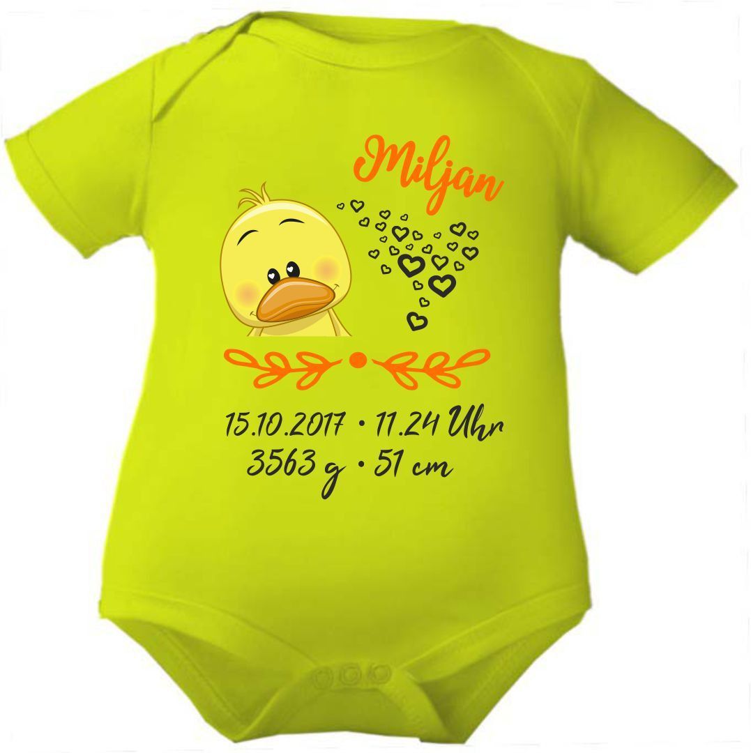 Kurzarm Baby Body personalisiert mit Motiv KÜKEN und Geburtsdaten