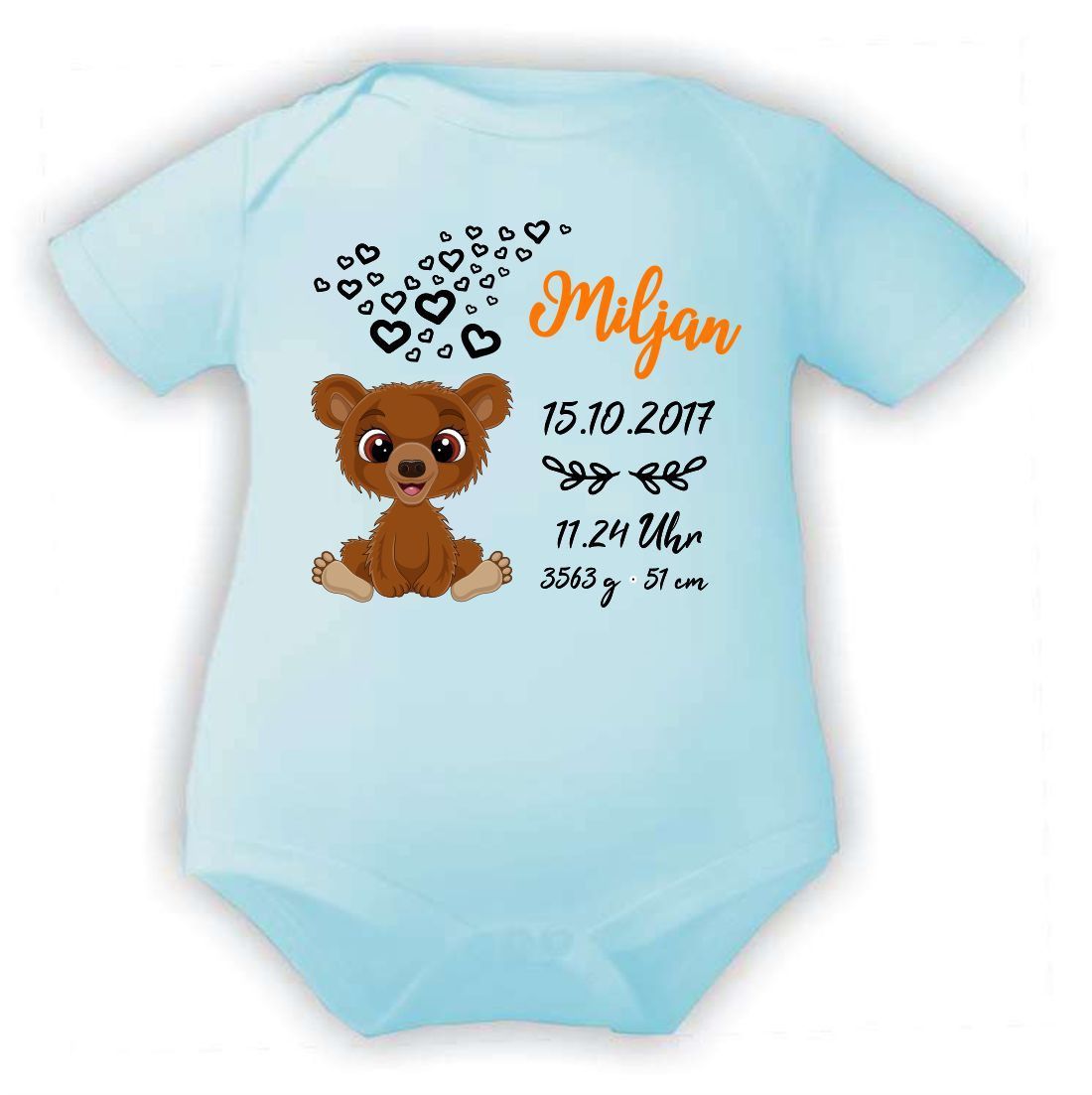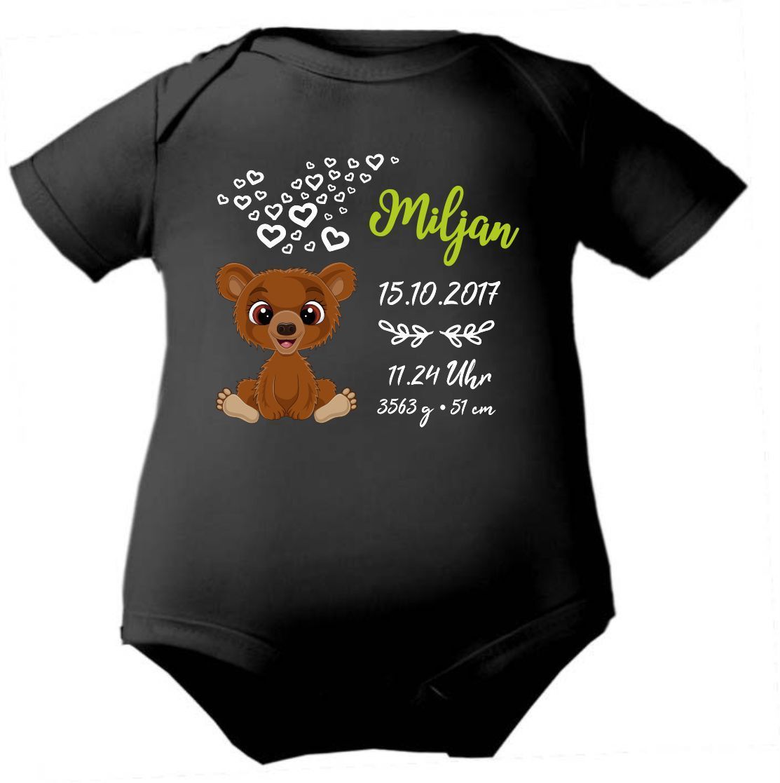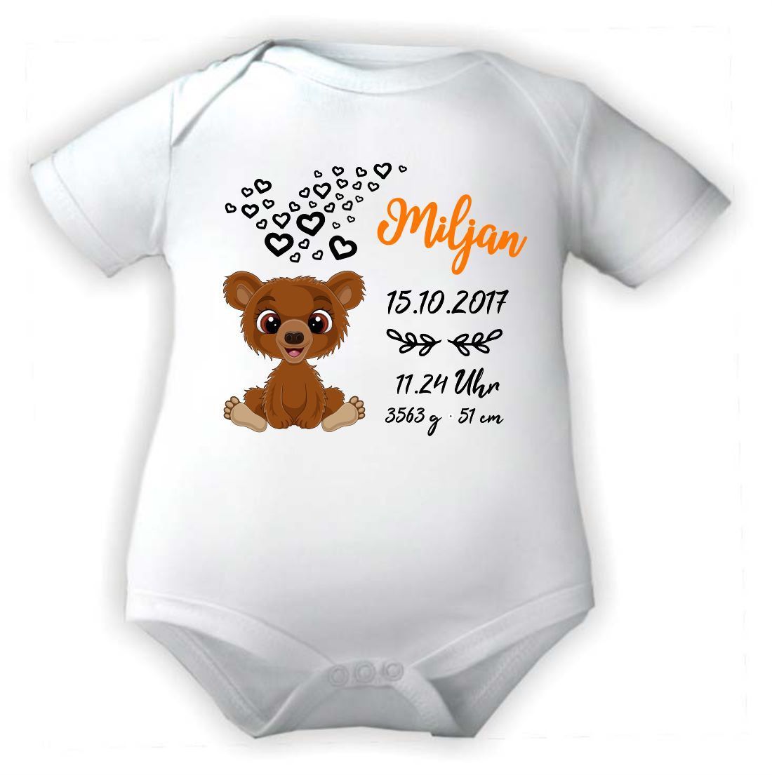 Kurzarm Baby Body personalisiert mit Motiv TEDDY und Geburtsdaten