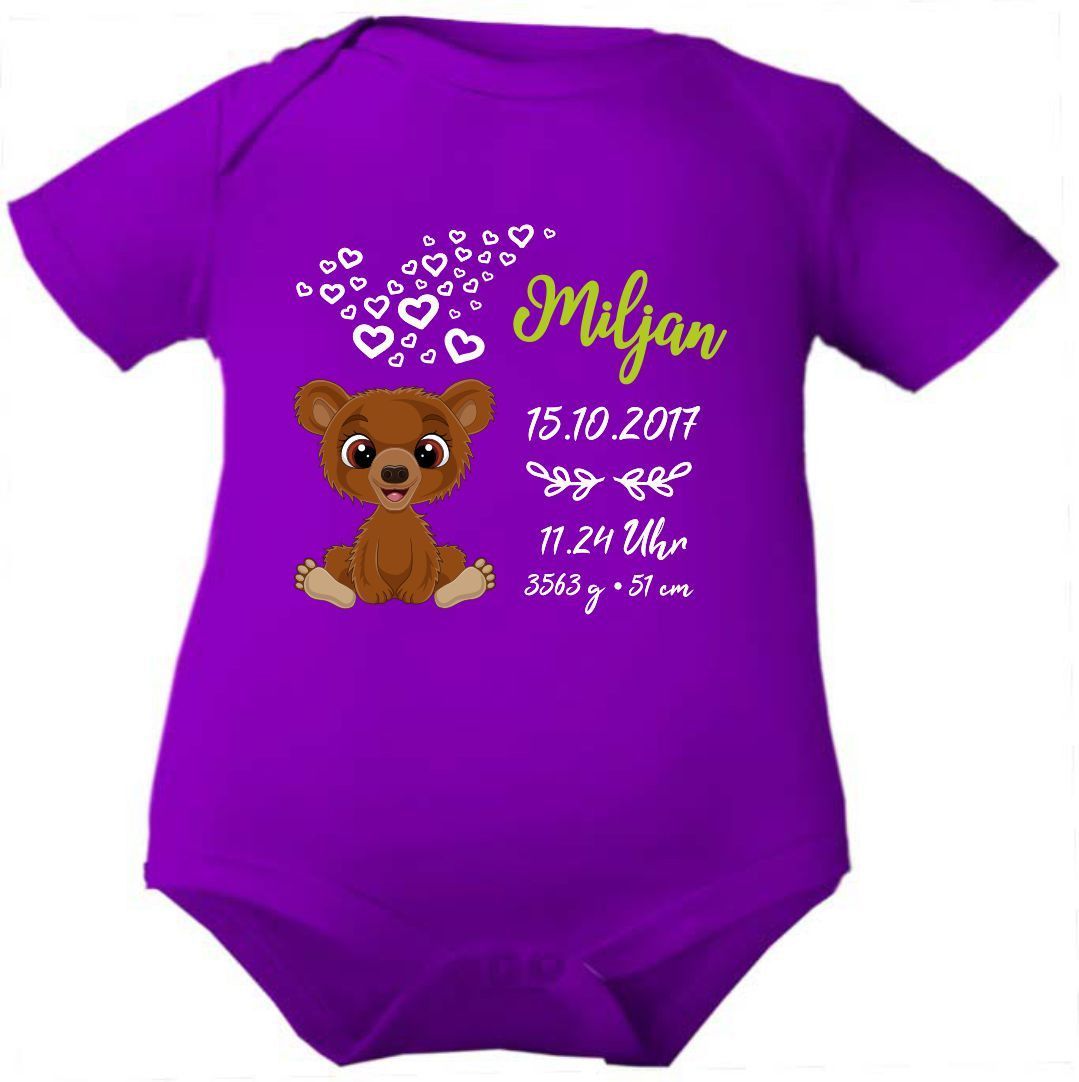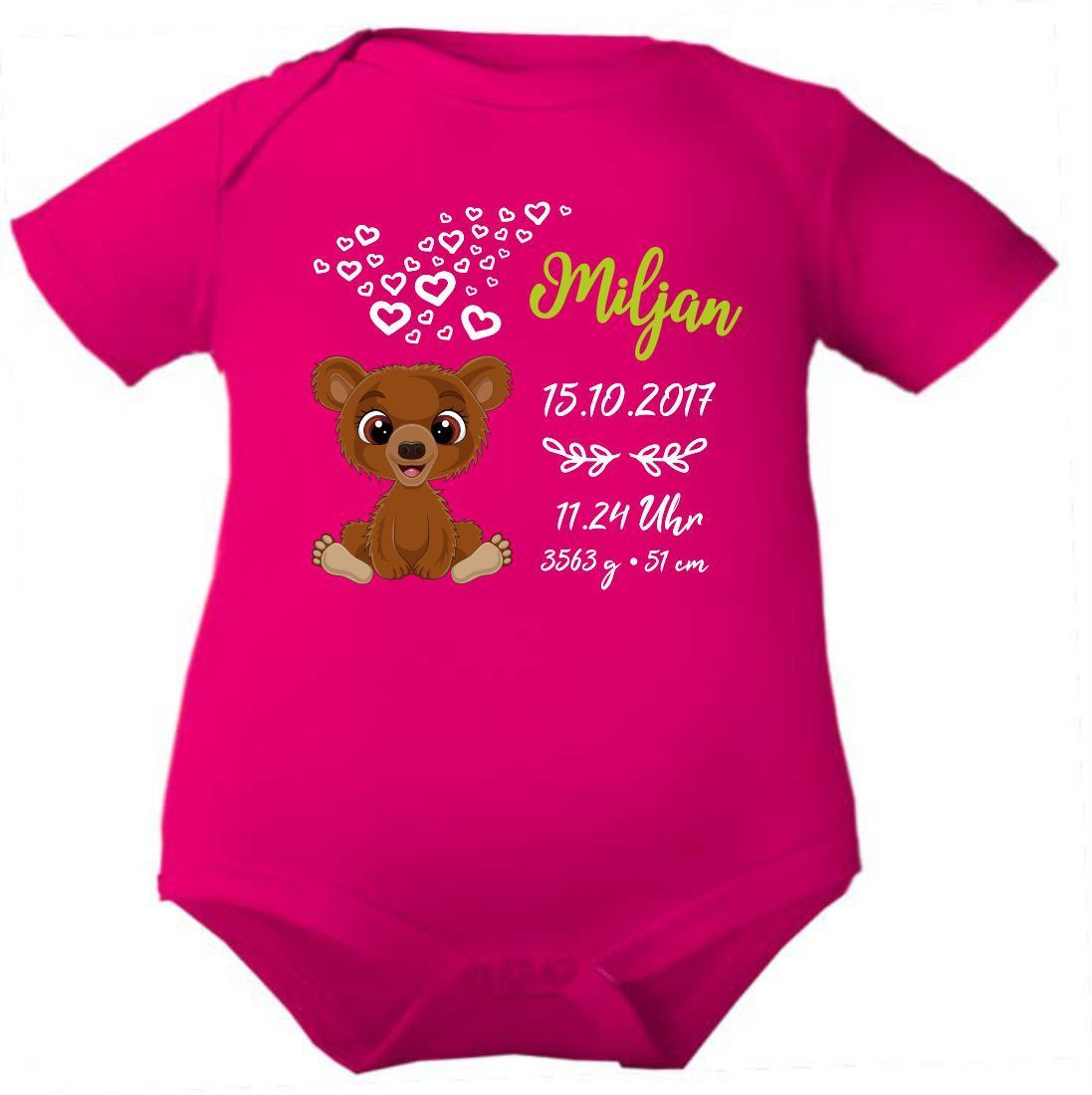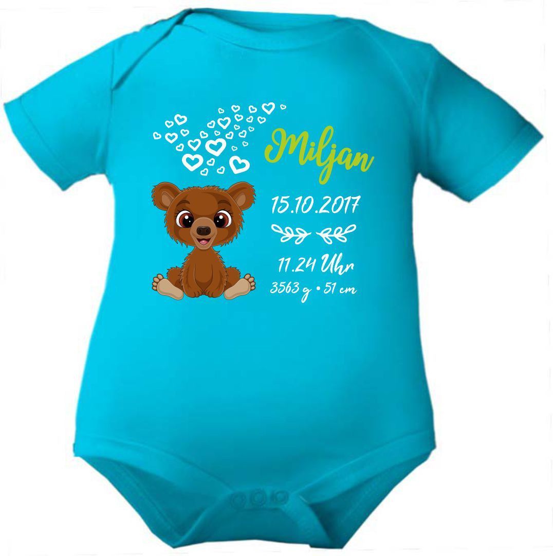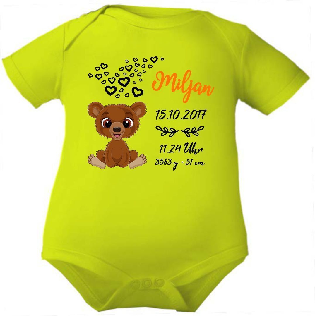 Kurzarm Baby Body personalisiert mit Motiv TEDDY und Geburtsdaten
