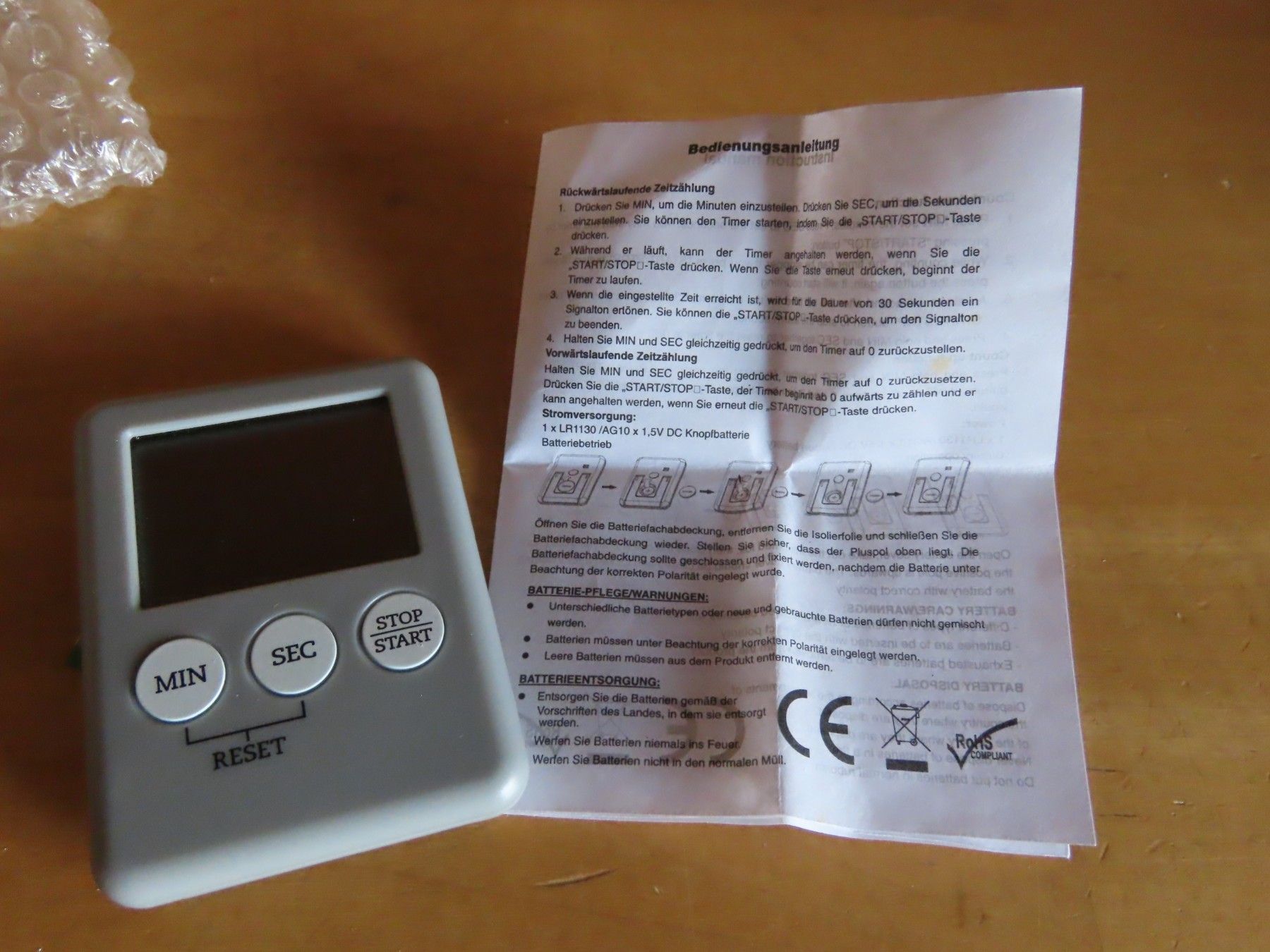 Kurzzeitmesser Digitale Eieruhr Küchenuhr leise grau