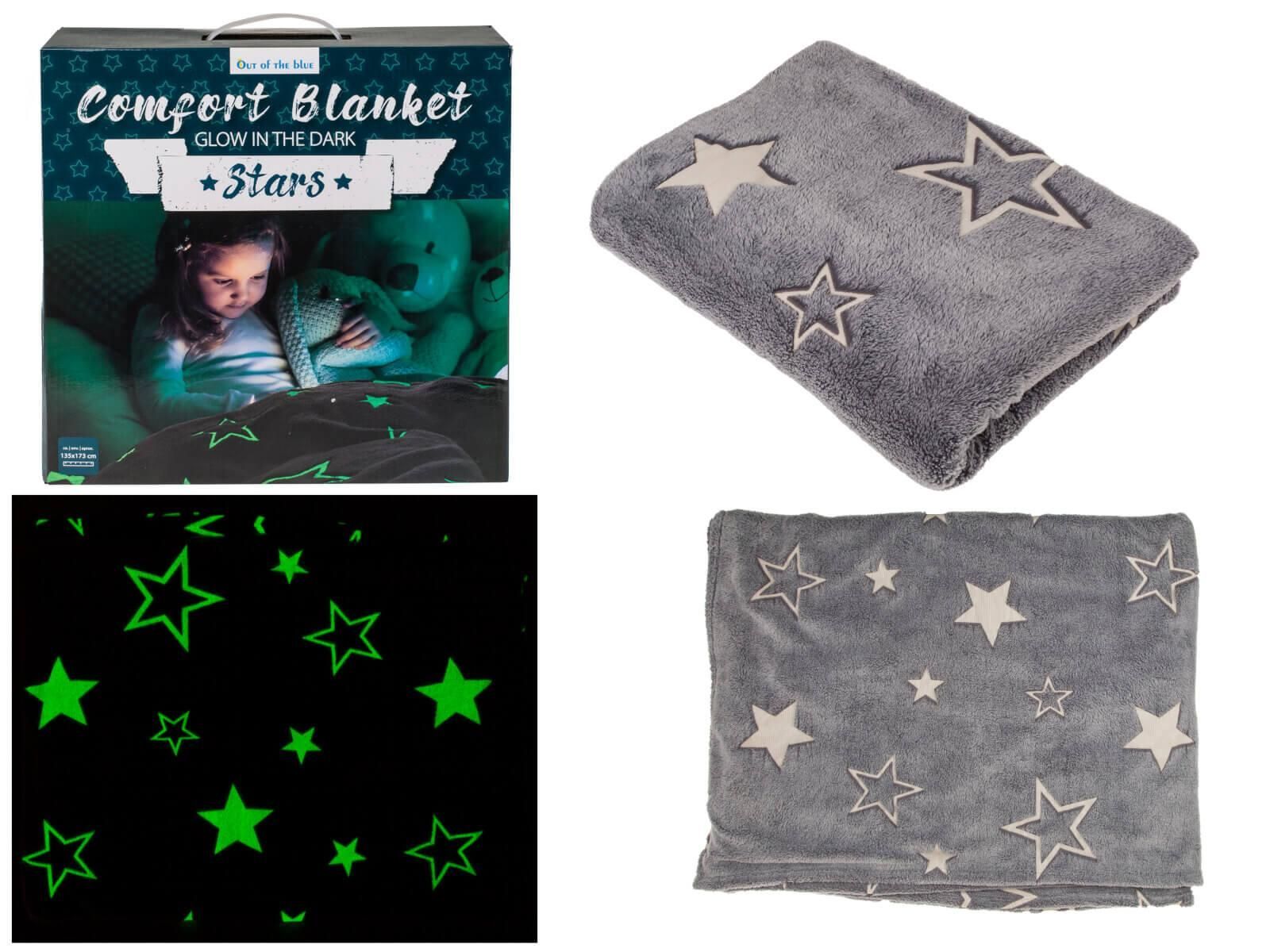 Out of the Blue Kuscheldecke mit leuchtenden Sternen Schmusedecke Sofadecke Glow in the dark