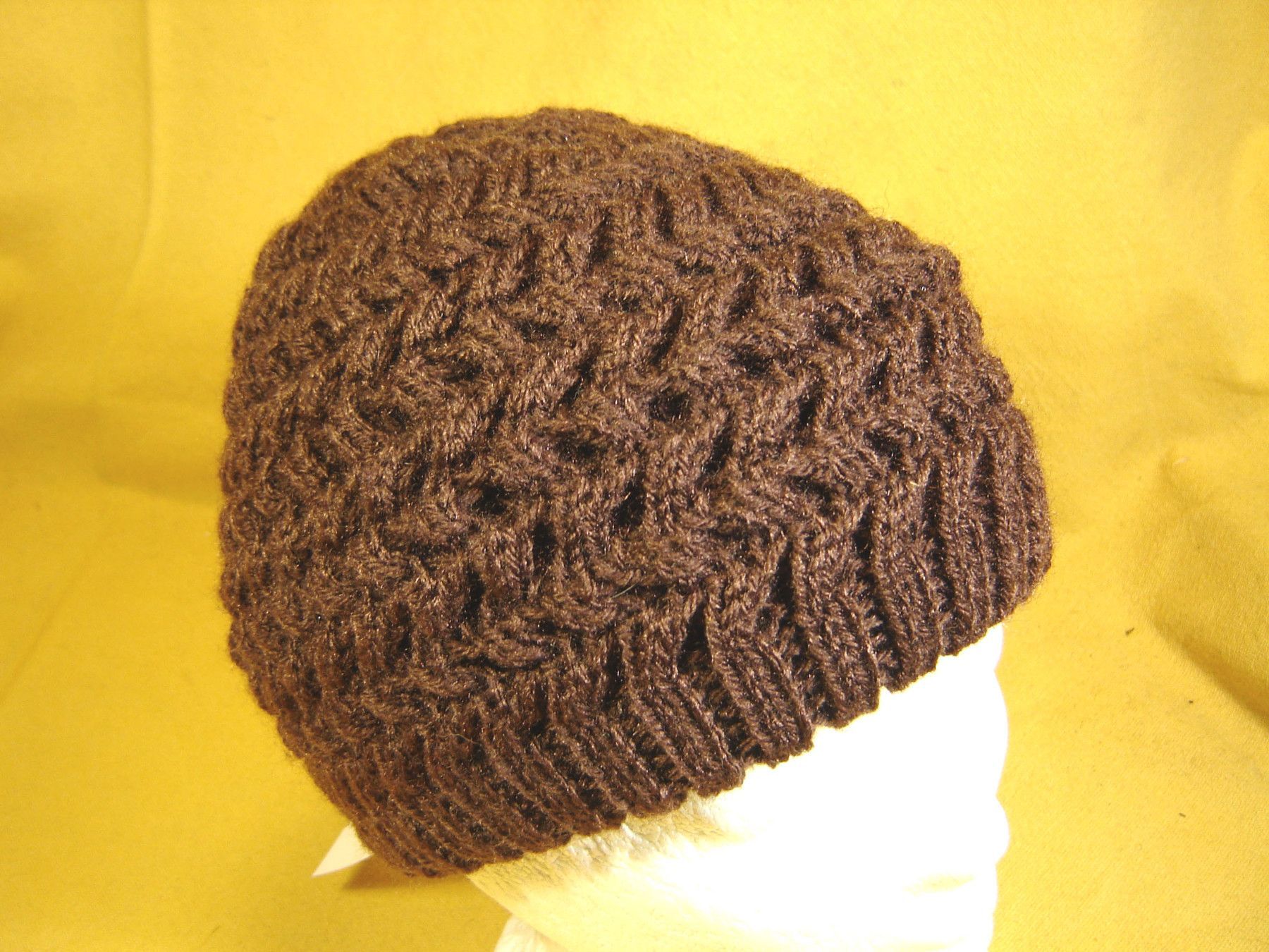 kuschelweiche Strick Baskenmütze Strickmütze doppelt gestrickt braun p B5