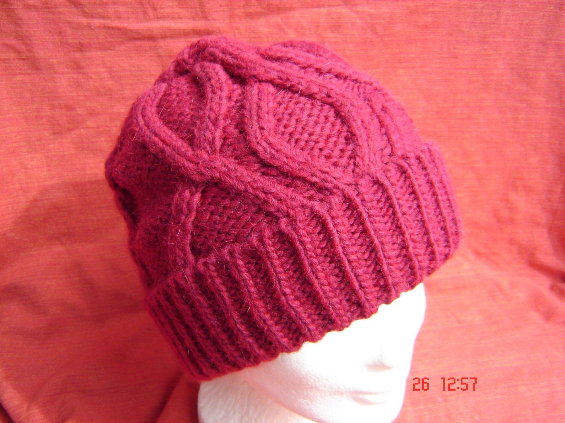 kuschelweiche Strickmütze weinrot mit Umschlag Teil Fleecefutter mit Alpaka B5