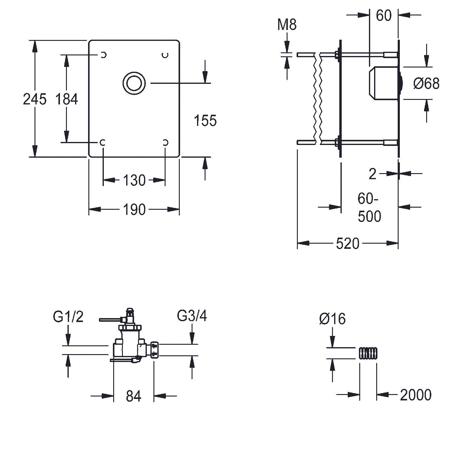 KWC KWC AR Durchgangsventil, F3, hydraulisch, o. Mischung, Hinterwandmontage, duschen