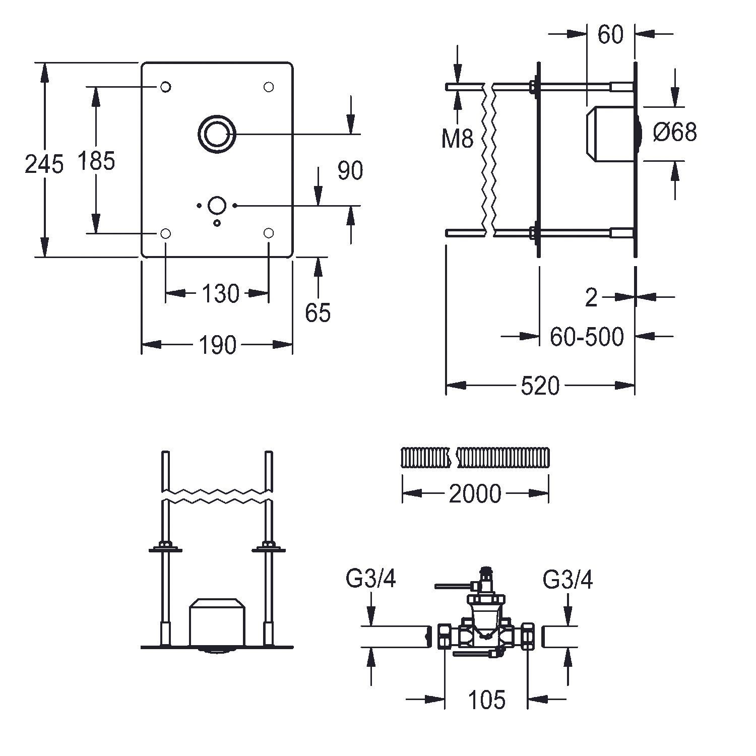 KWC KWC AR Durchgangsventil, F3, hydraulisch, o. Mischung, Hinterwandmontage, waschen