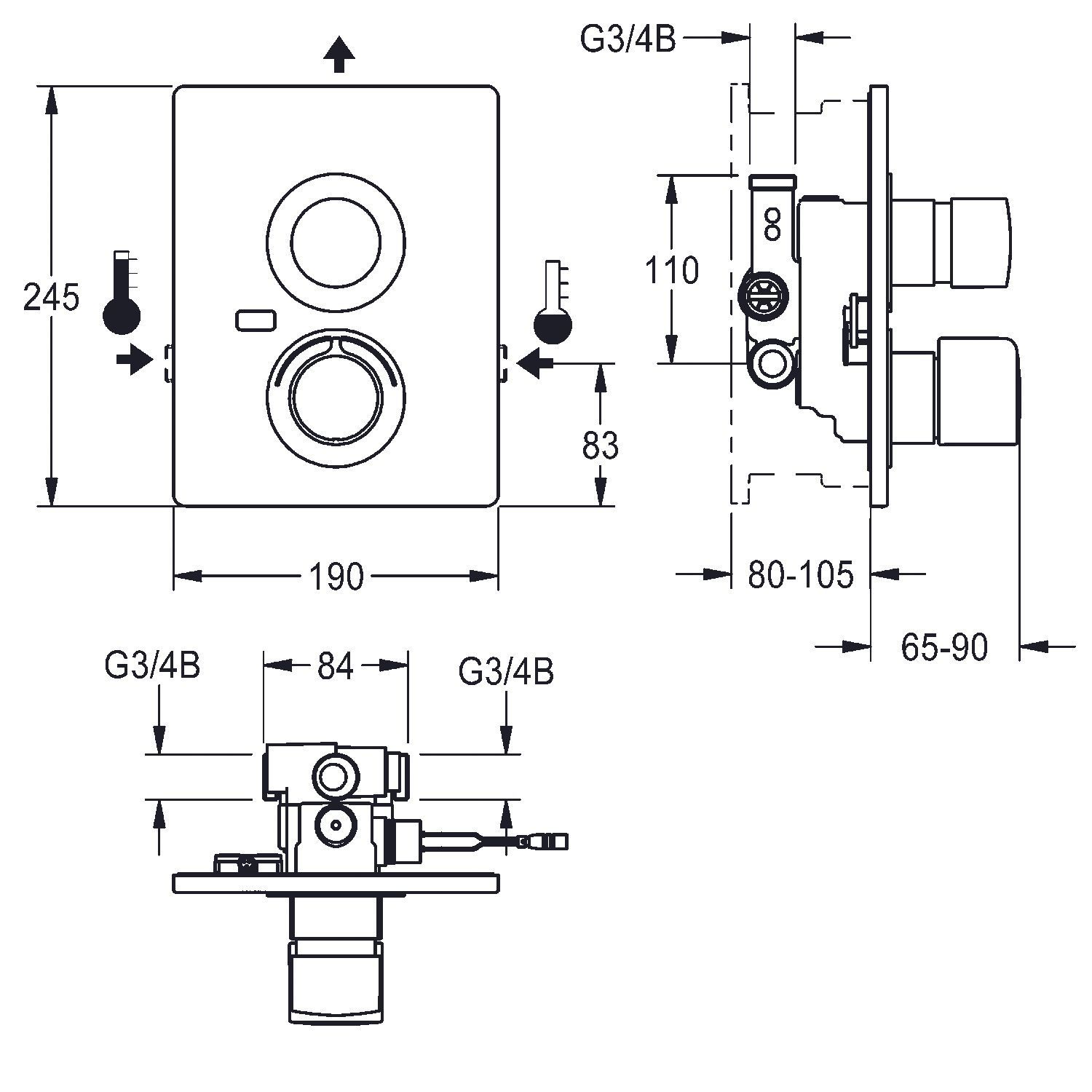 KWC KWC AR Duscharmatur, F5, hydr., Thermostat, UP, F-Set, Hygieneeinheit, 2xBypass