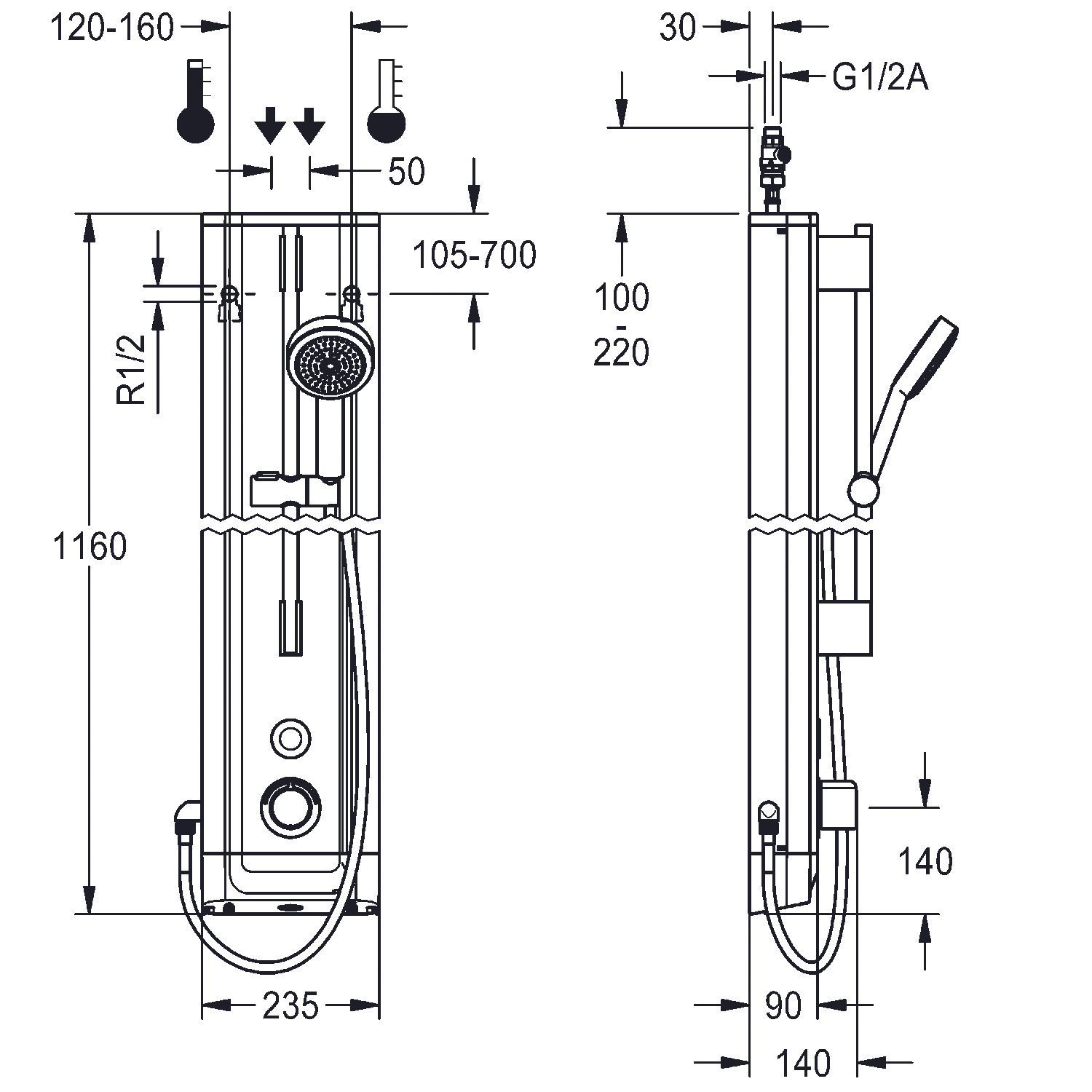 KWC KWC AR Duschpaneel, F5, elek., Edelstahl, Therm., HB-Garnitur, f. Batt./Netzteil