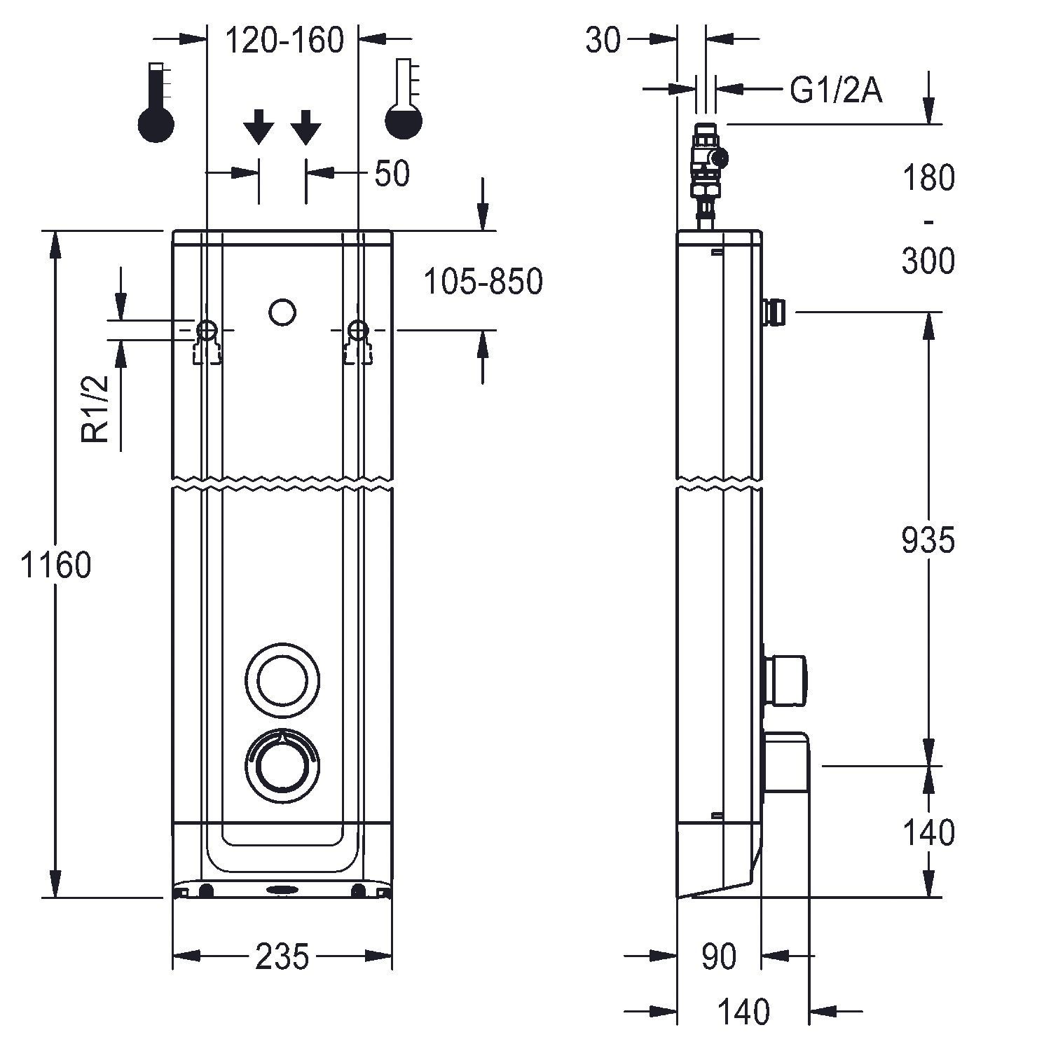 KWC KWC AR Duschpaneel, F5, hydr., Edelstahl, Thermostat, f. Duschkopf
