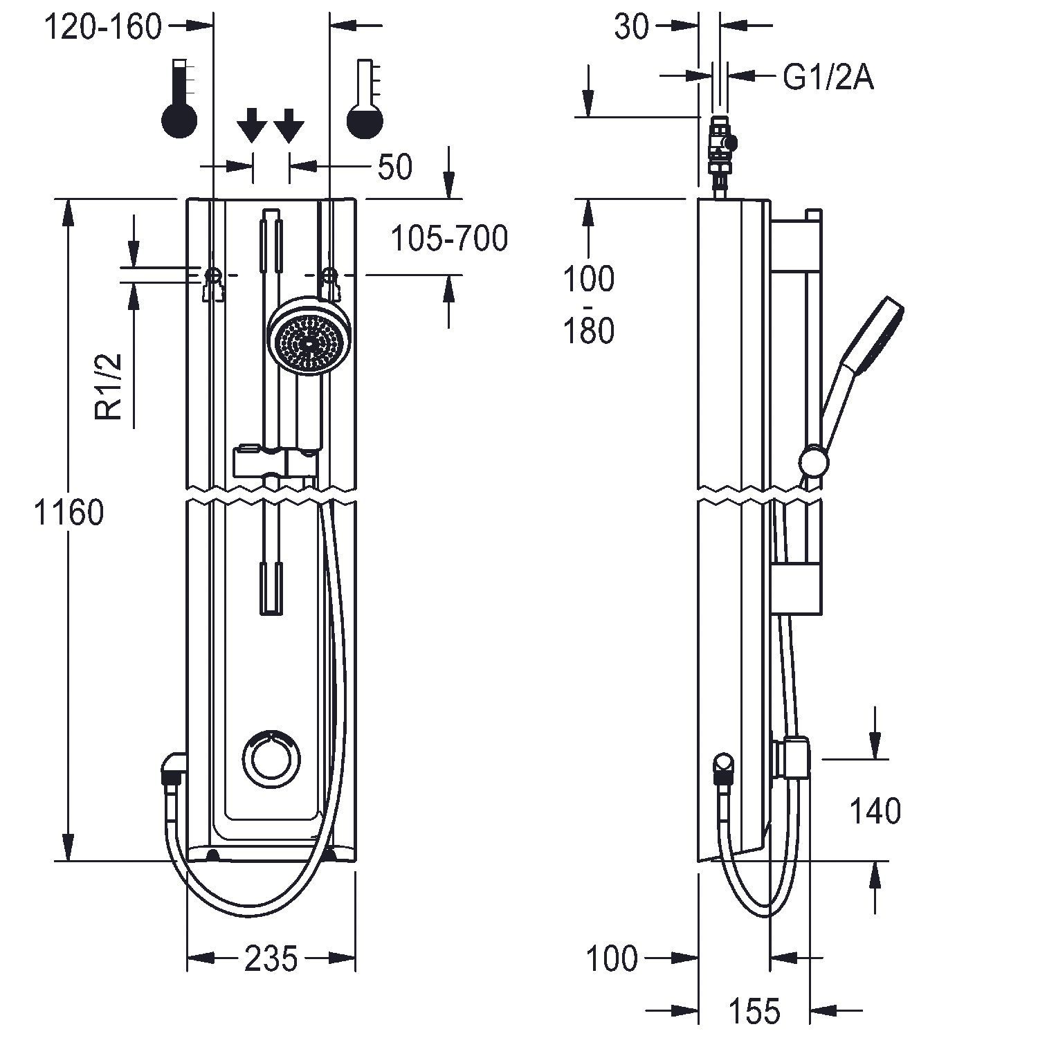 KWC KWC AR Duschpaneel, F5, hydr., Miranit, Mischer, HB-Garnitur