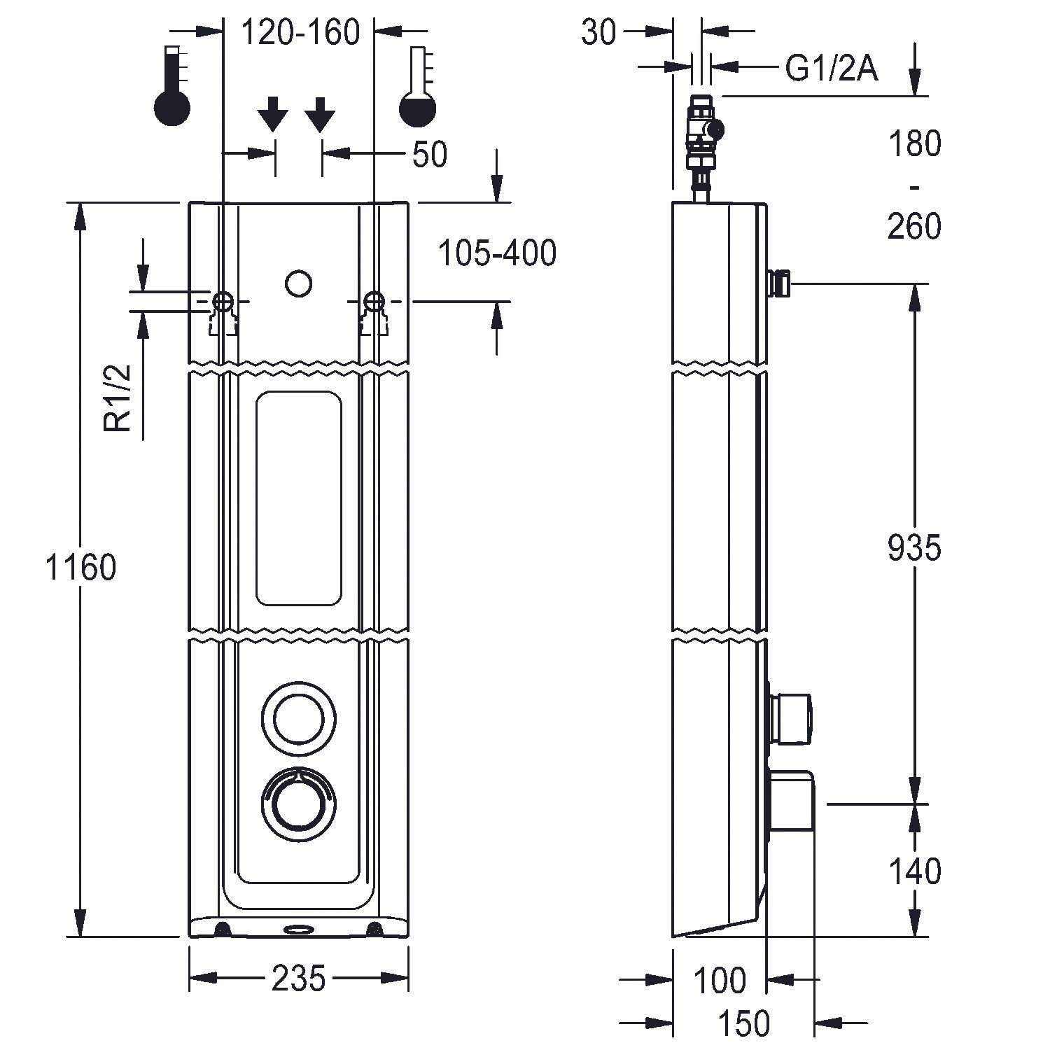 KWC KWC AR Duschpaneel, F5, hydr., Miranit, Thermostat, f. Duschkopf, Ablage