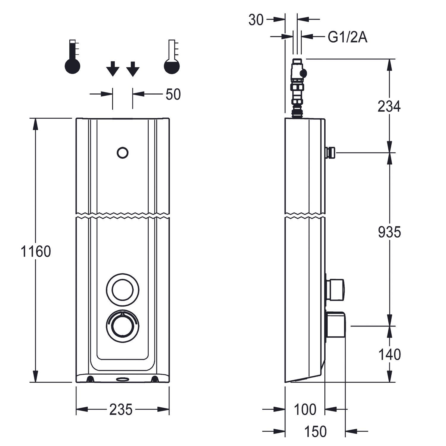 KWC KWC AR Duschpaneel, F5, hydr., Miranit, Thermostat, f. Duschkopf, verrohrt