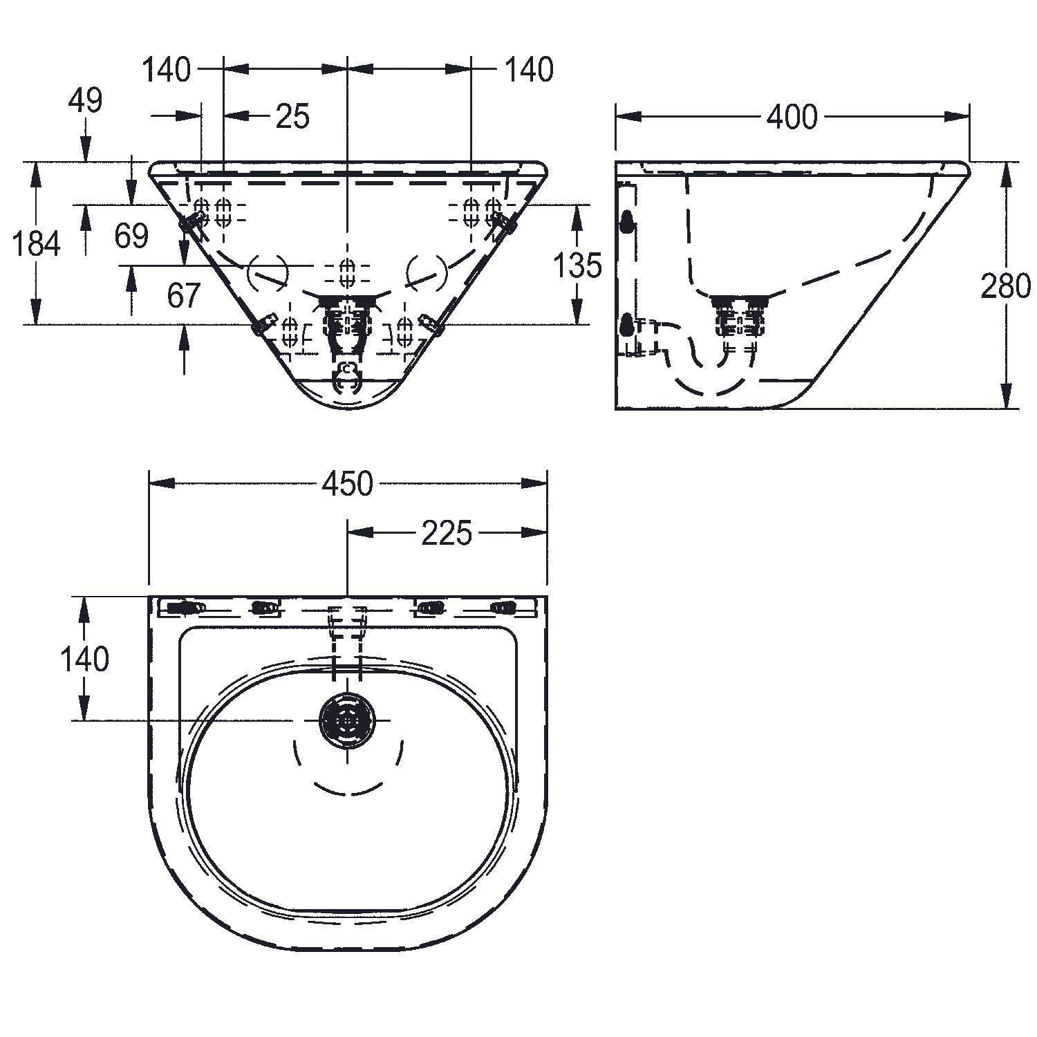 KWC KWC AR Einzelwaschtisch, ANIMA, Edelstahl, 450x280x400 mm, konisch, Siebventil