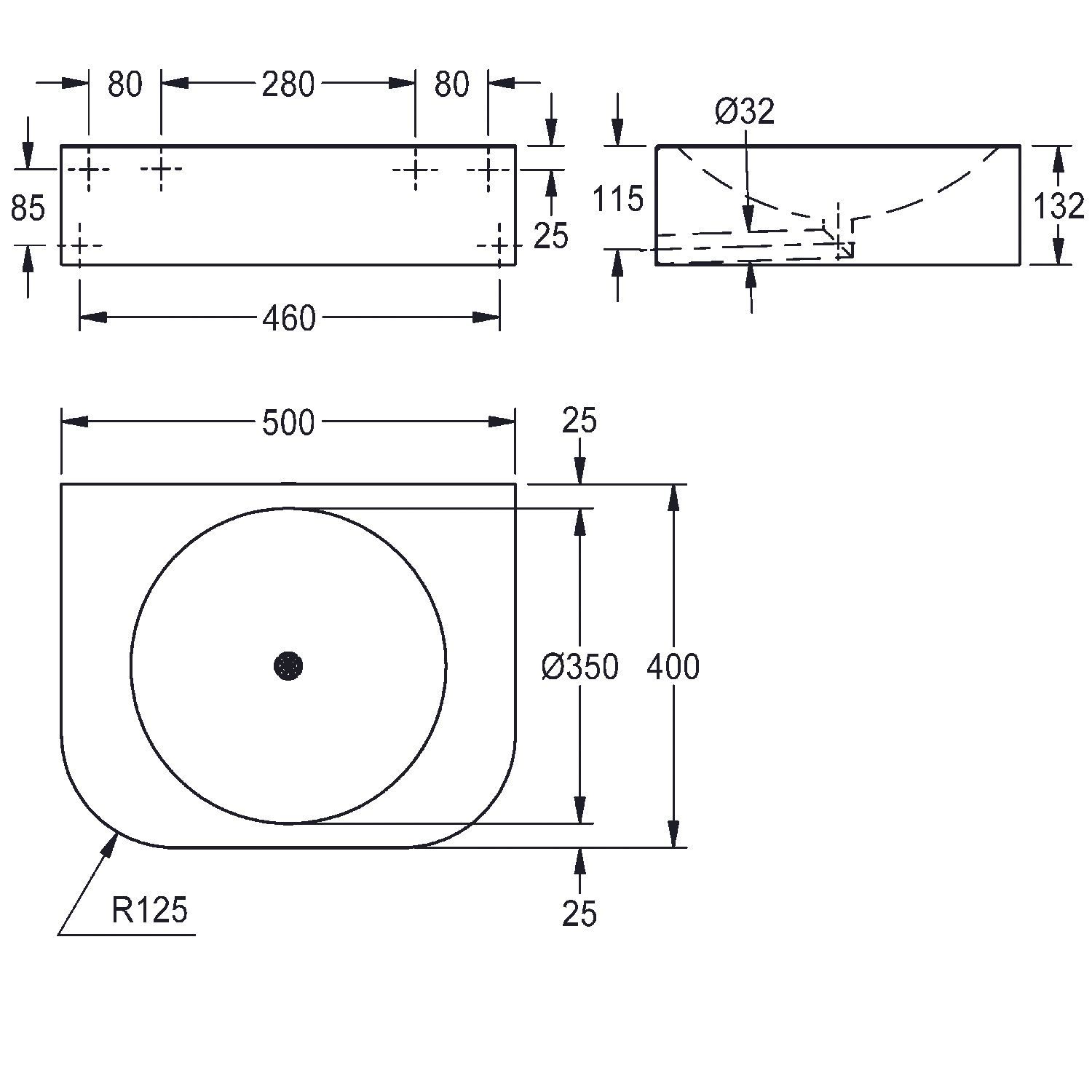 KWC KWC AR Einzelwaschtisch, ANIMA, Edelstahl, 500x132x400 mm, ohne Hahnbank