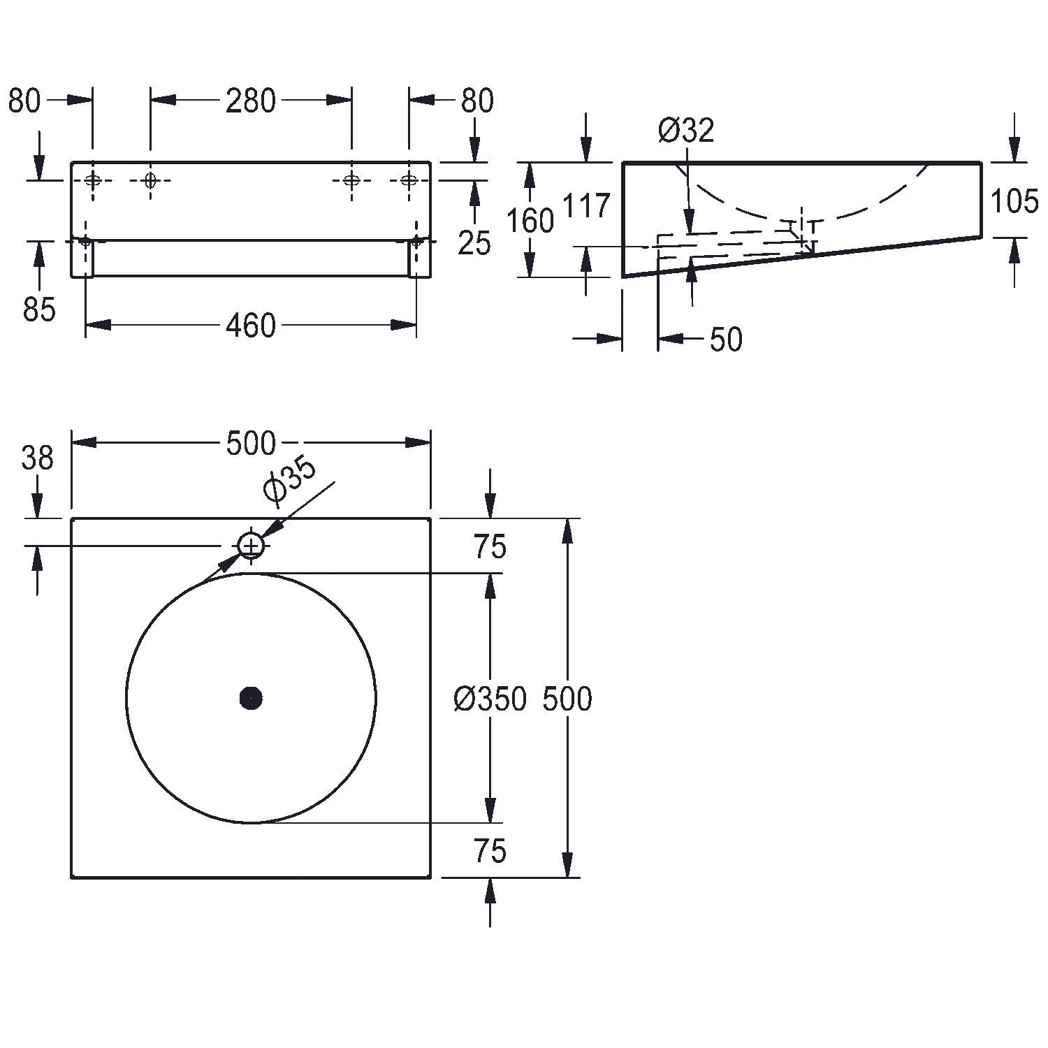 KWC KWC AR Einzelwaschtisch, ANIMA, Edelstahl, 500x160x500 mm, mit Hahnloch