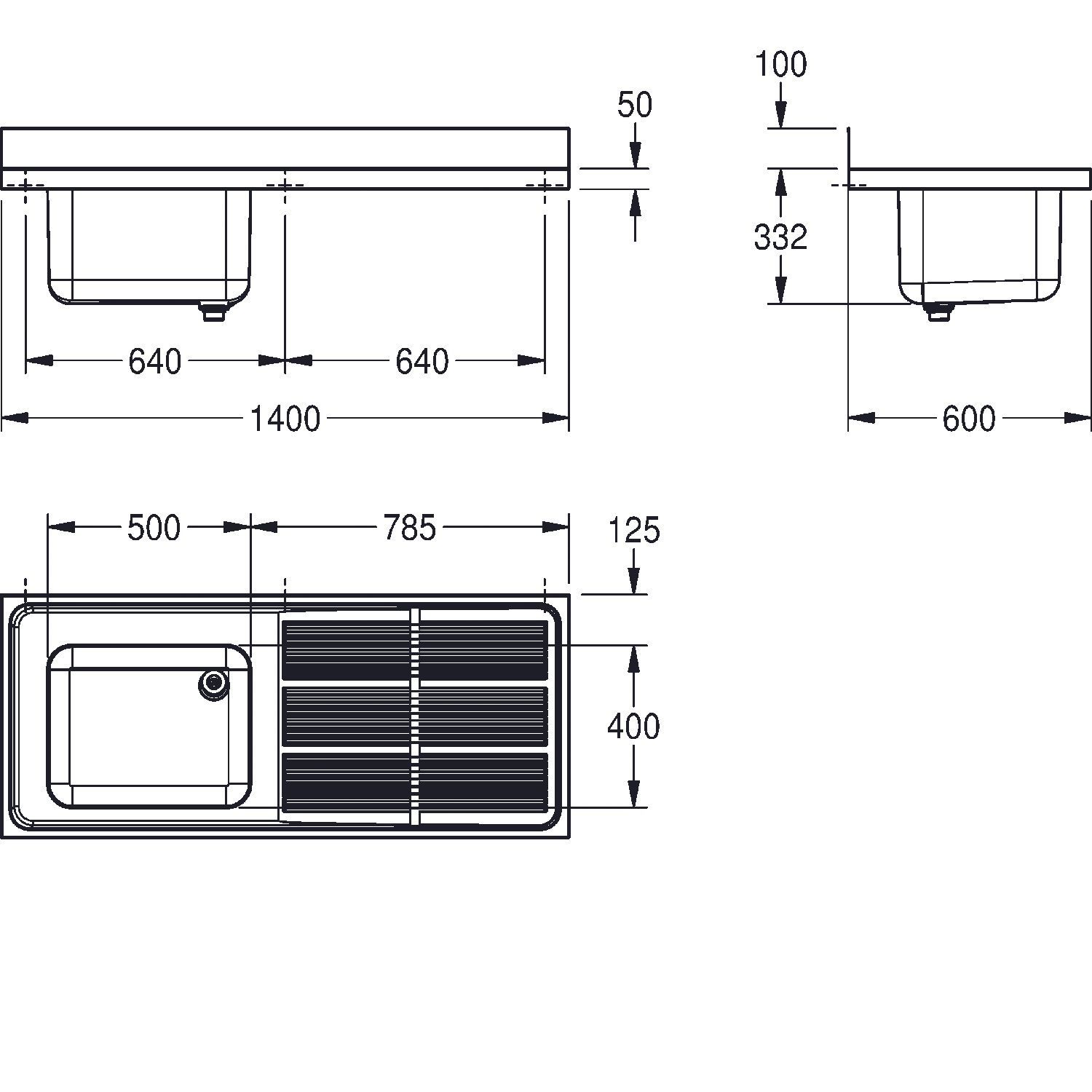 KWC KWC AR Gewerbespüle, MAXIMA, Edelstahl, 1400x432x600 mm, Tropfteil rechts
