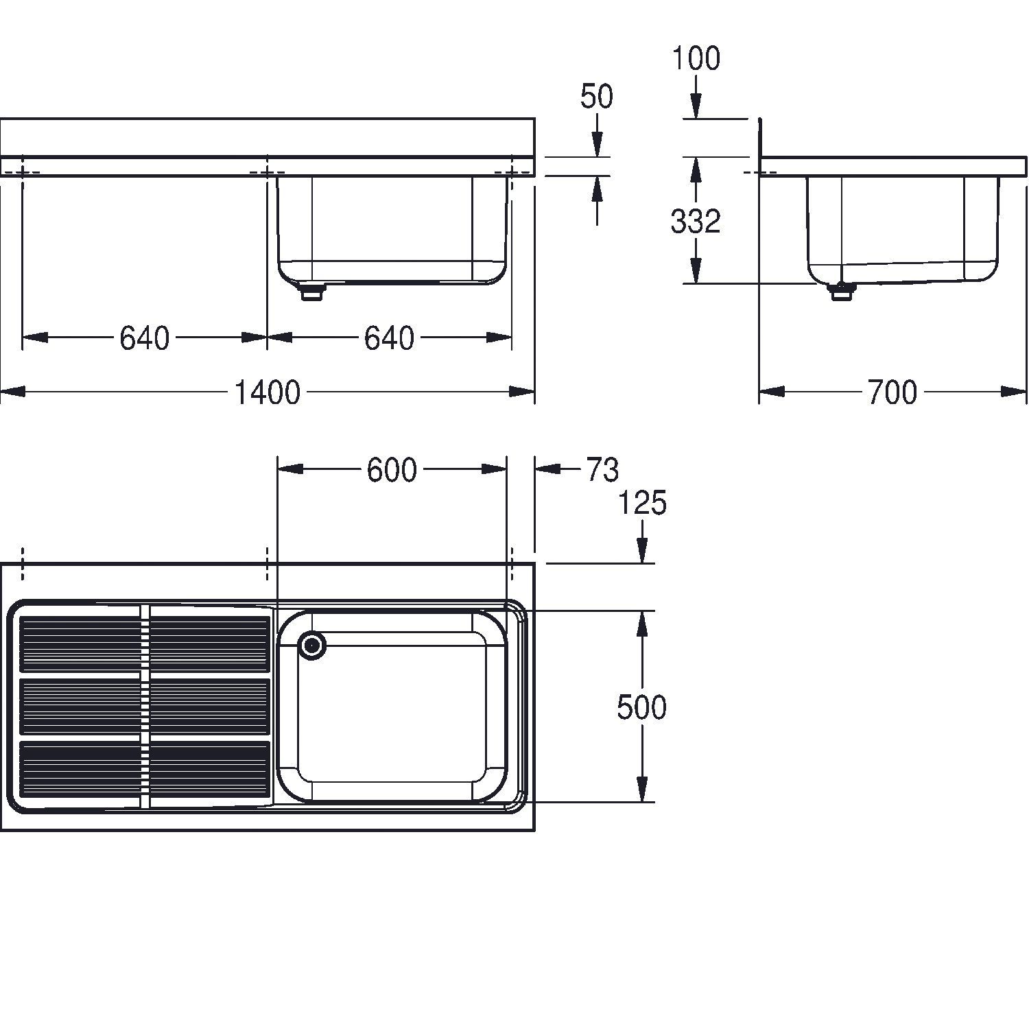KWC KWC AR Gewerbespüle, MAXIMA, Edelstahl, 1400x432x700 mm, Tropfteil links