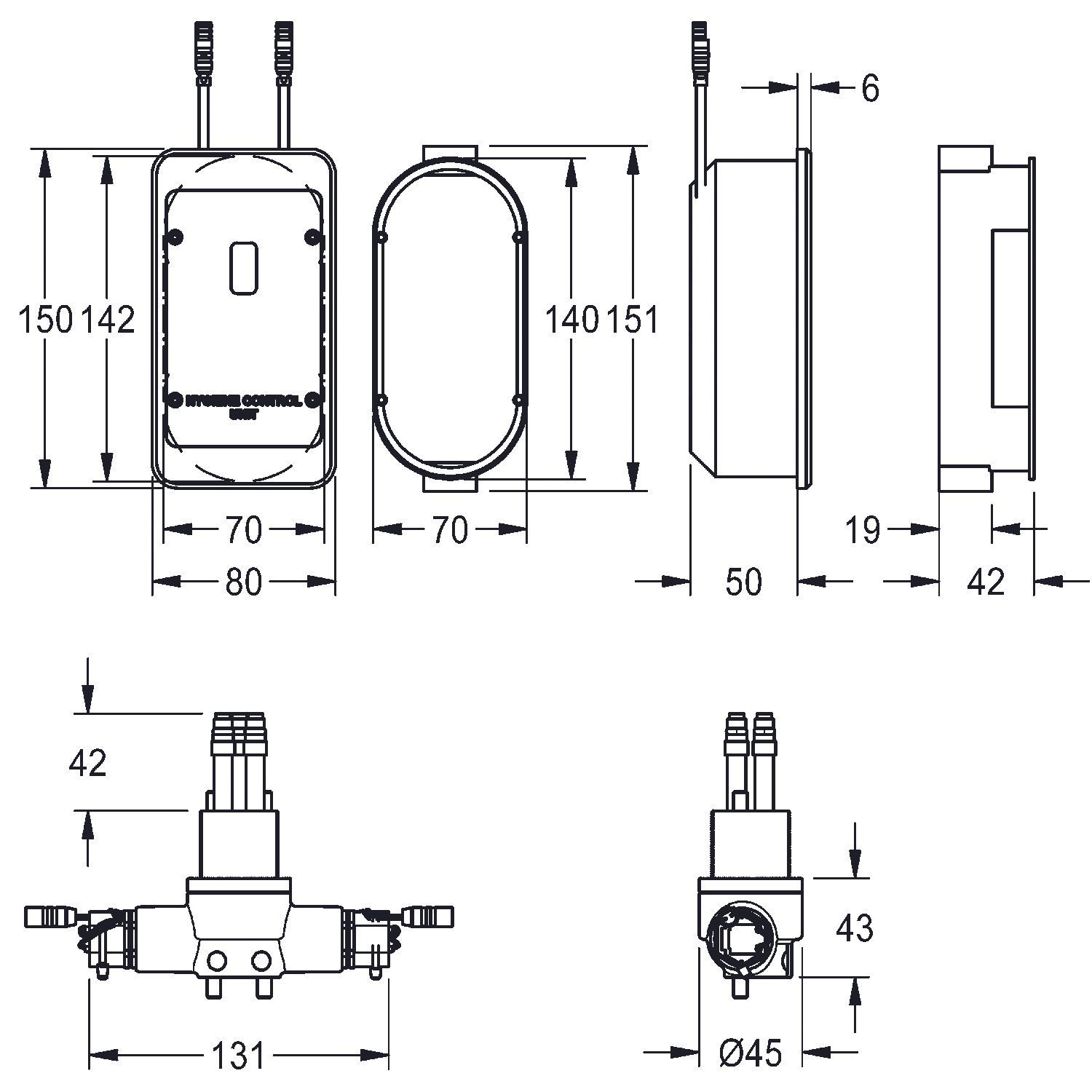 KWC KWC AR Hygieneeinheit, F5, Unterputzmontage, f. EHM F5 100 mm, f. Batt. oder Netztei