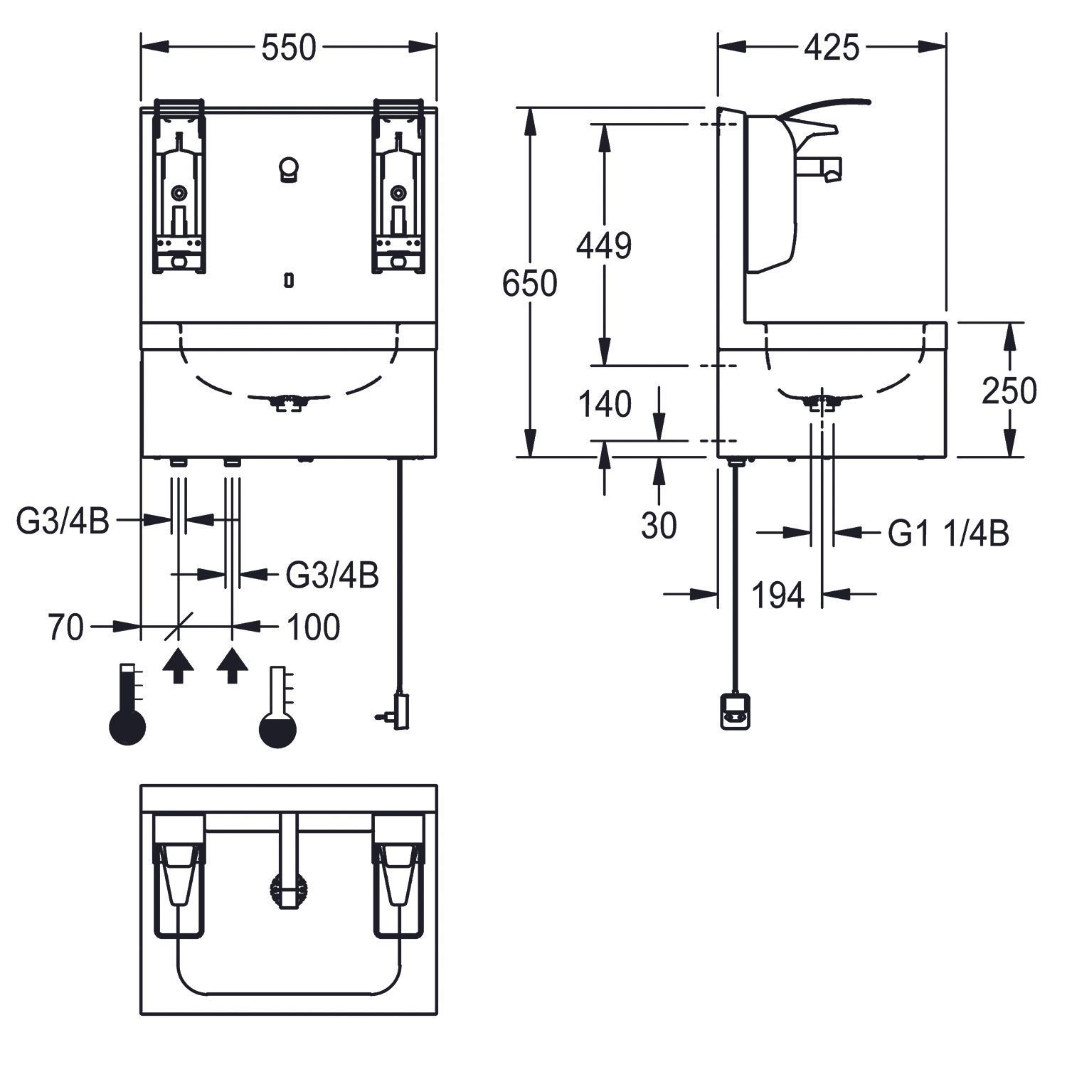 KWC KWC AR Hygienewaschplatz, elek., Edelstahl, AP, Thermostat, 550x650x425 mm, 230 VAC