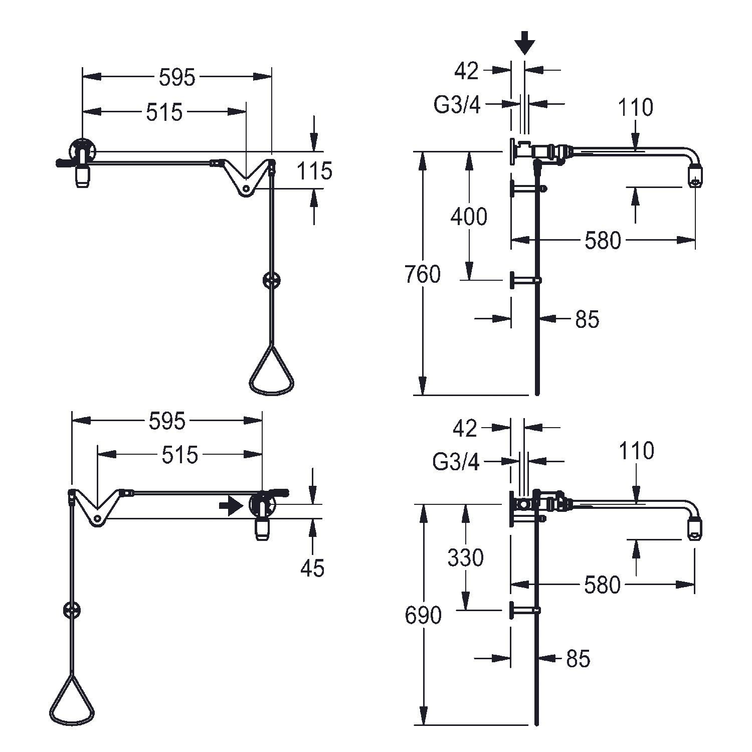 KWC KWC AR Notdusche, Zugstange, Türbereich, grün, Wasser aus Decke oder seitlich