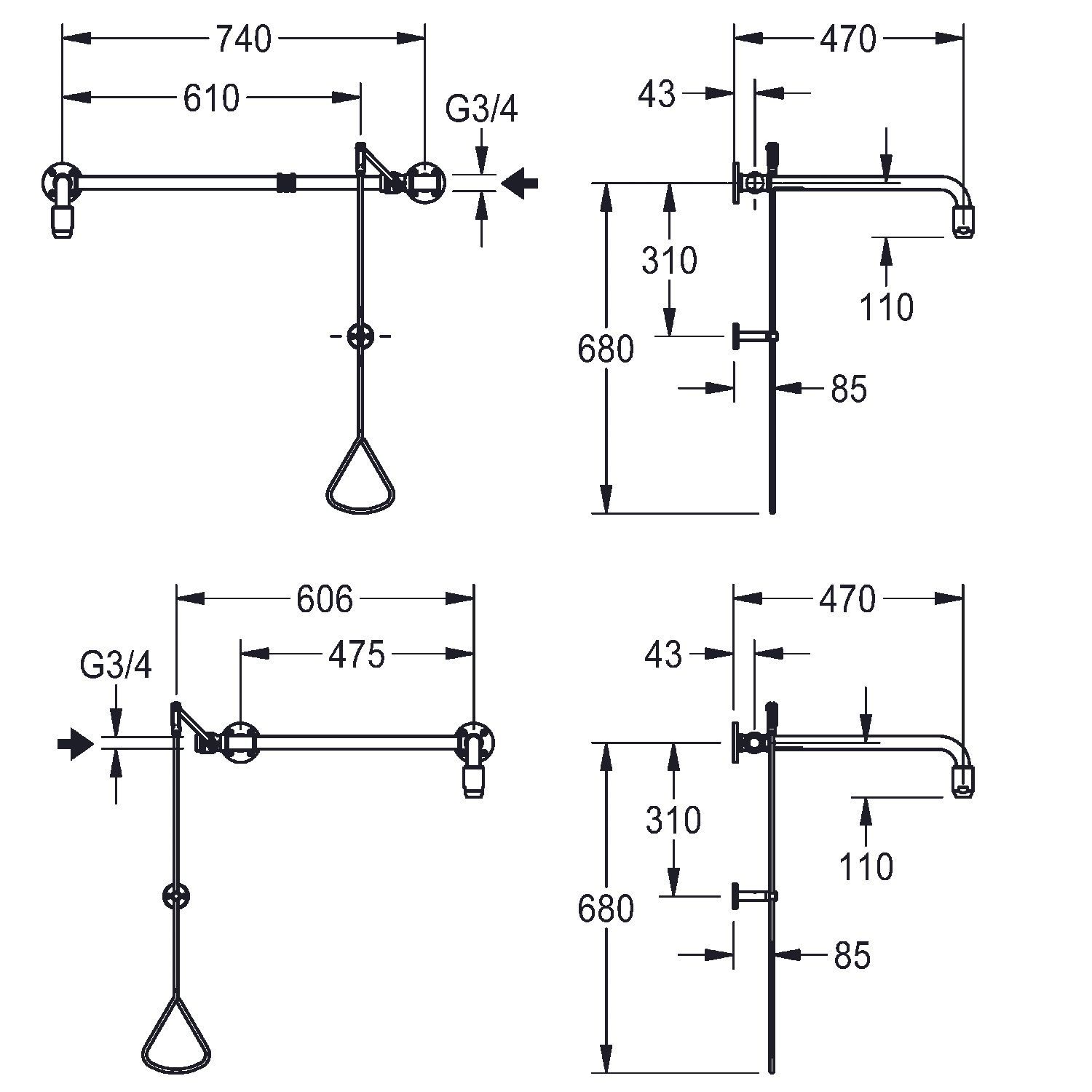 KWC KWC AR Notdusche, Zugstange, Türbereich, grün, Wasser seitlich