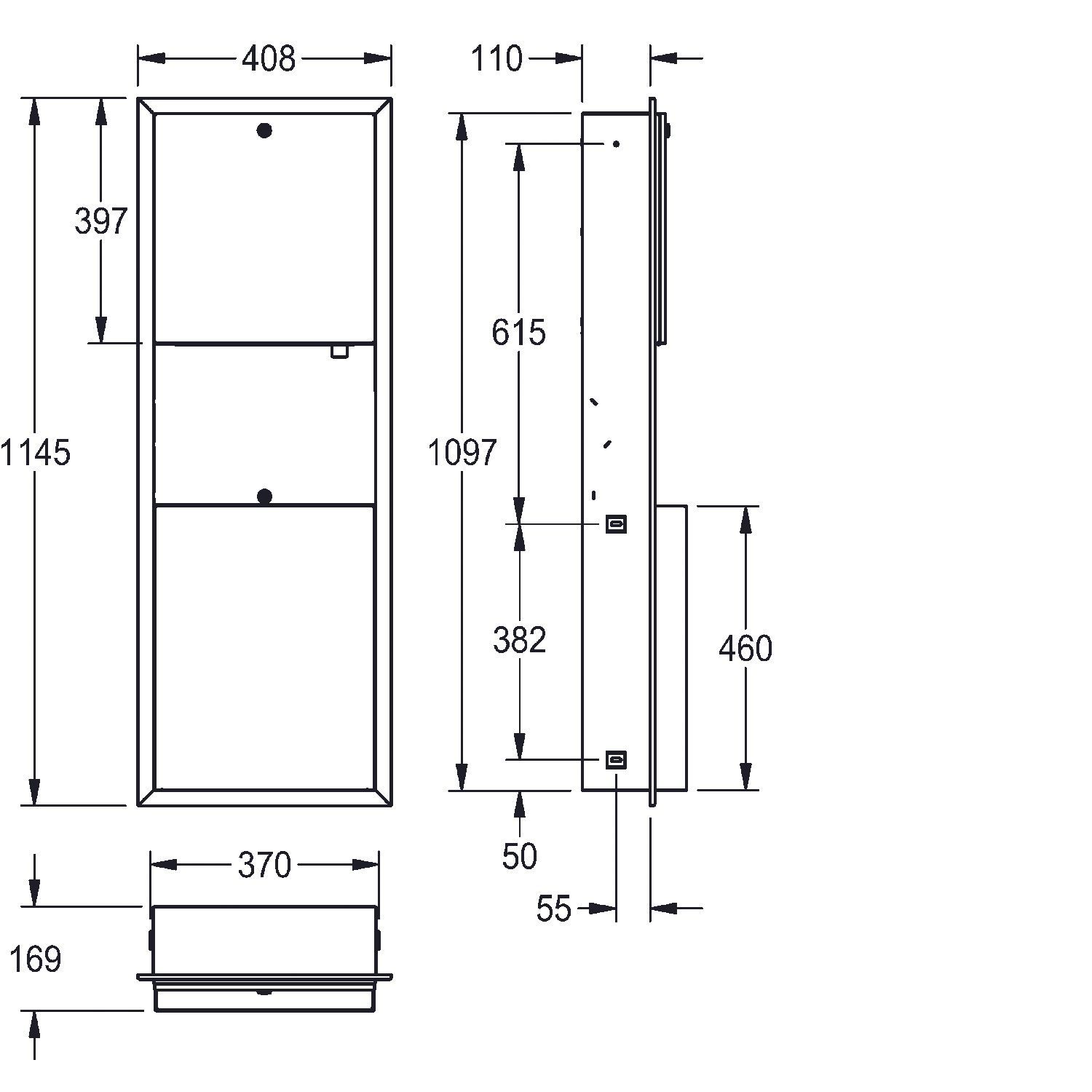 KWC KWC AR Papier-Seifen-Handtuch-Kombi, RODAN, Edelstahl, 408x1145x169 mm, Unterputz