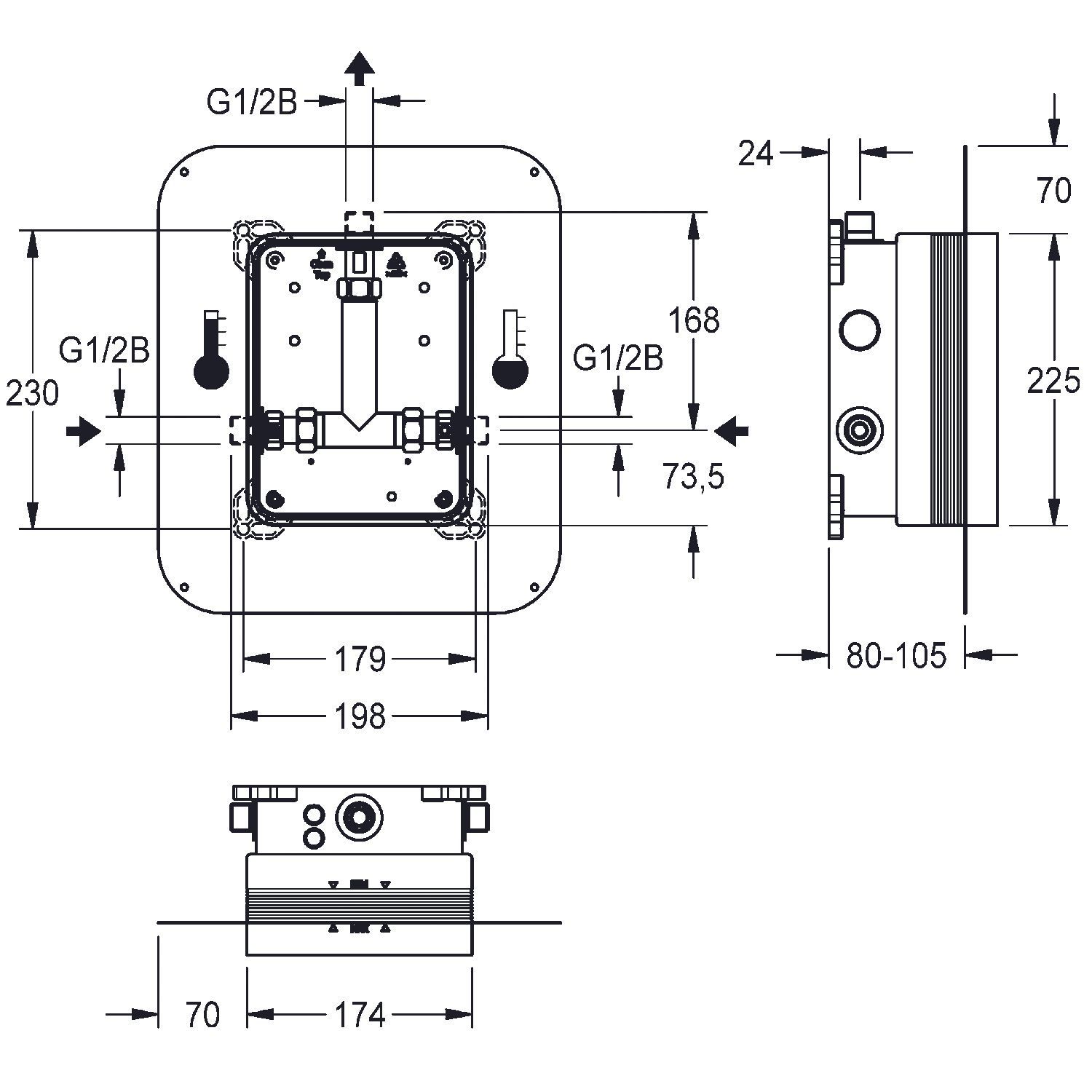 KWC KWC AR Rohbauset, F5, Systembox R5, duschen, Warm- und Kaltwasser, Klebeflansch