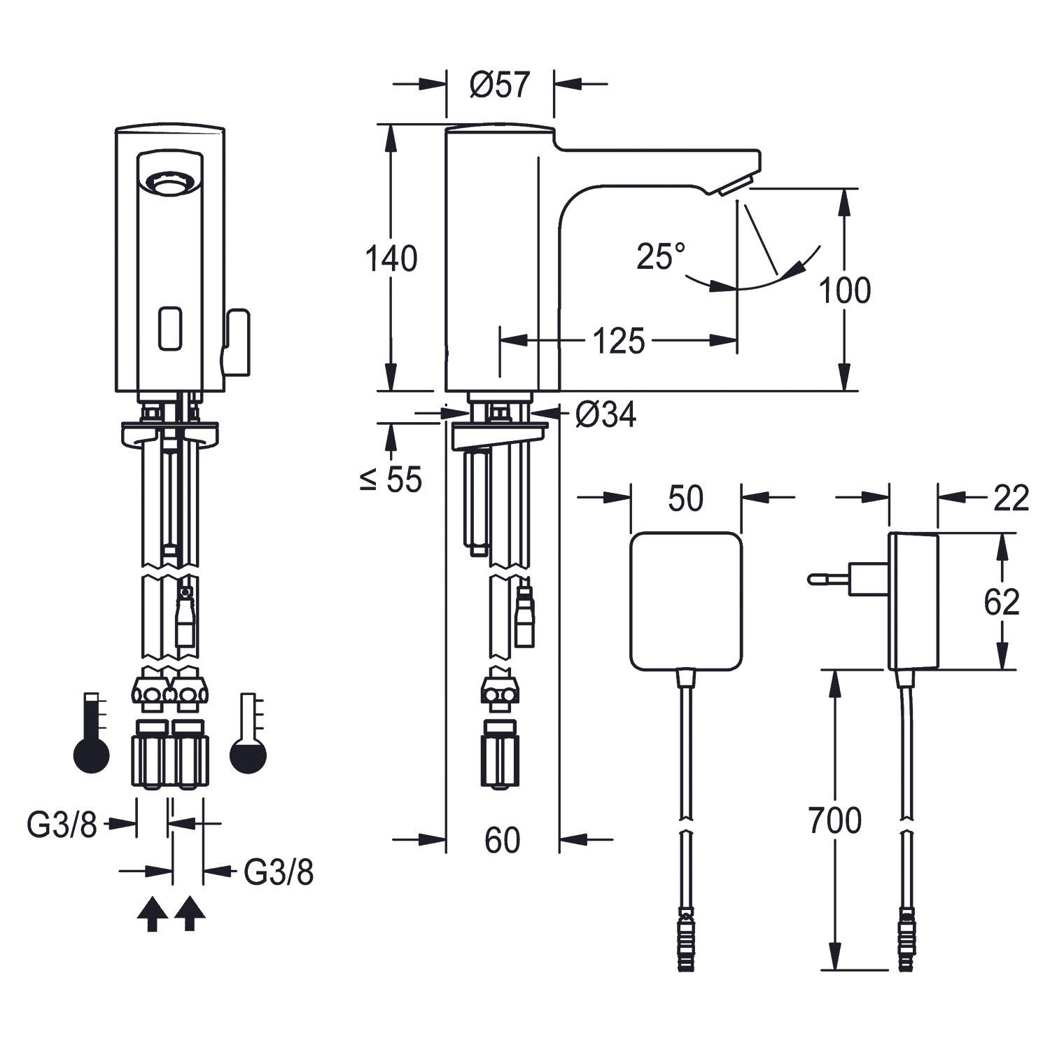 KWC KWC AR Standbatterie, F5, elek., Mischer, 5l, Rohre, Steckernetzteil 230 VAC
