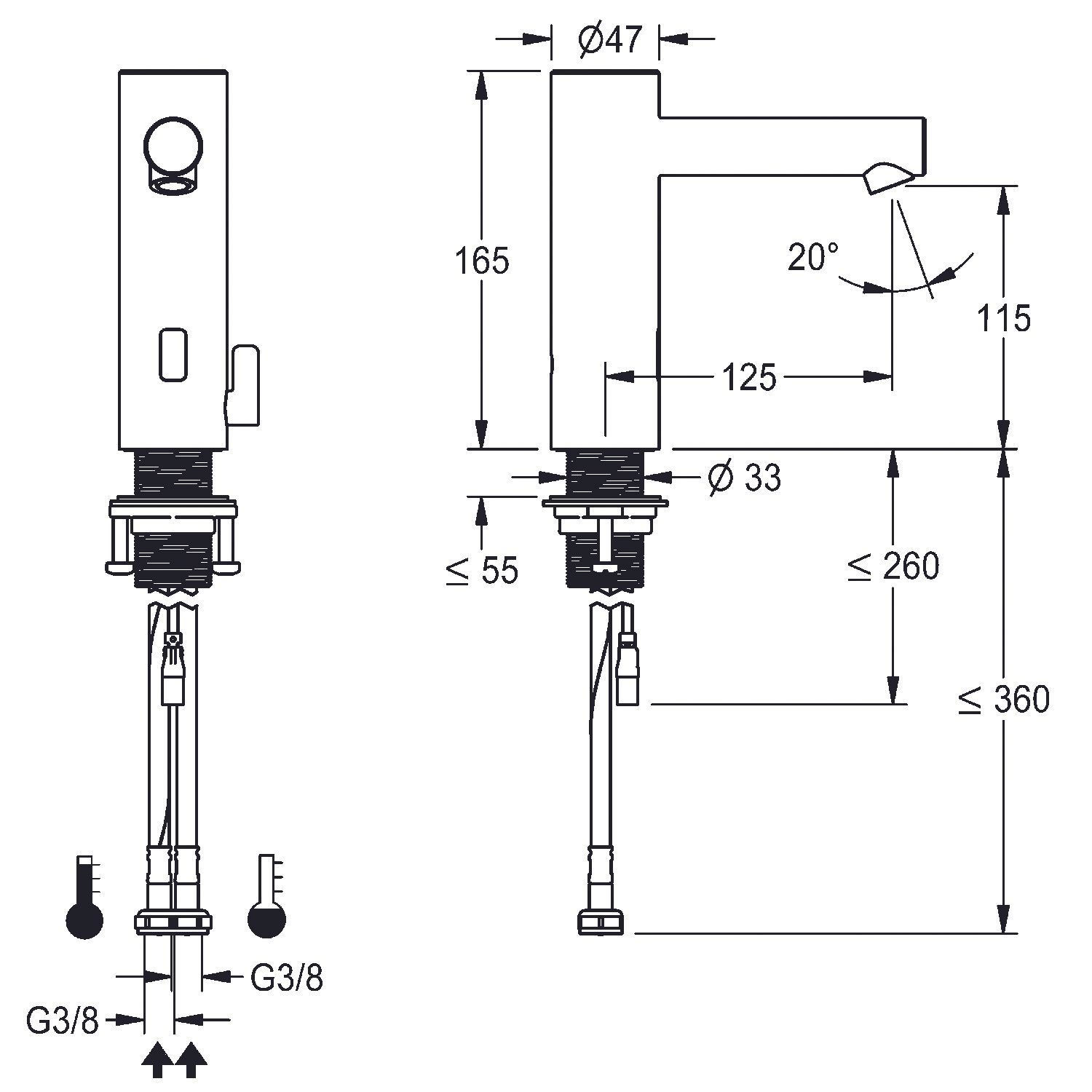 KWC KWC AR Standbatterie, F7, elek., Mischer, Edst., 5,7 l, Ausl. 125 mm, f. Batt./Net