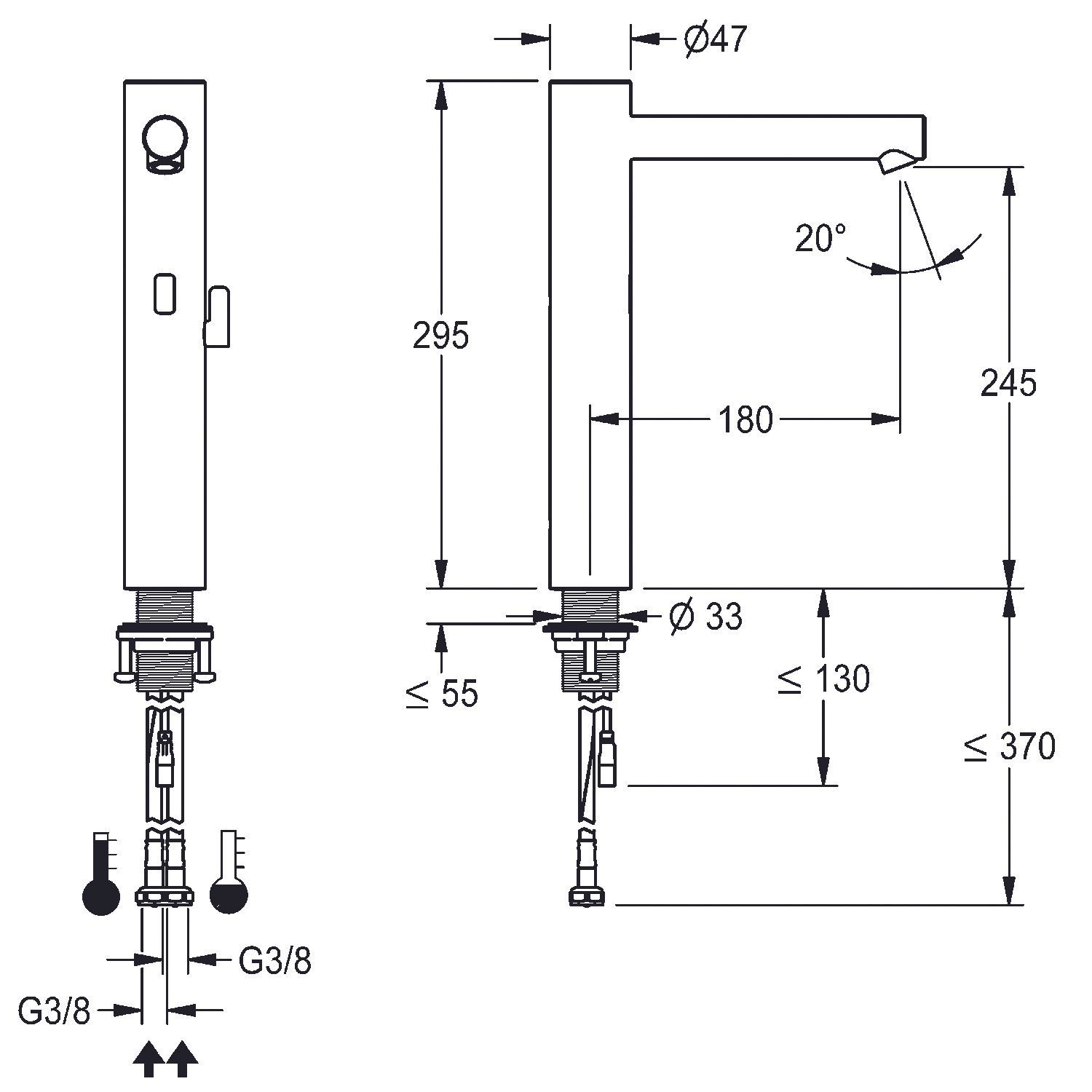 KWC KWC AR Standbatterie, F7, elek., Mischer, Edst., 5,7 l, Ausl. 180 mm, f. Batt./Net