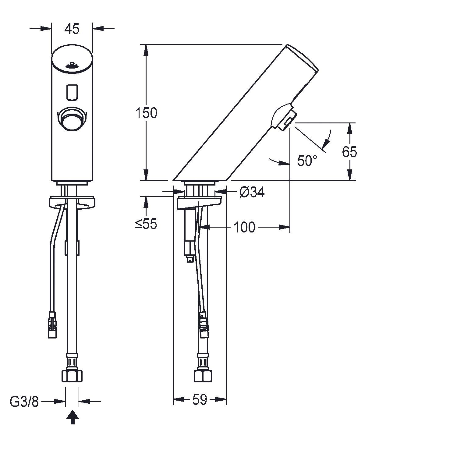 KWC KWC AR Standventil, F3, elek., o. Mischung, 3l, f. Netzteil