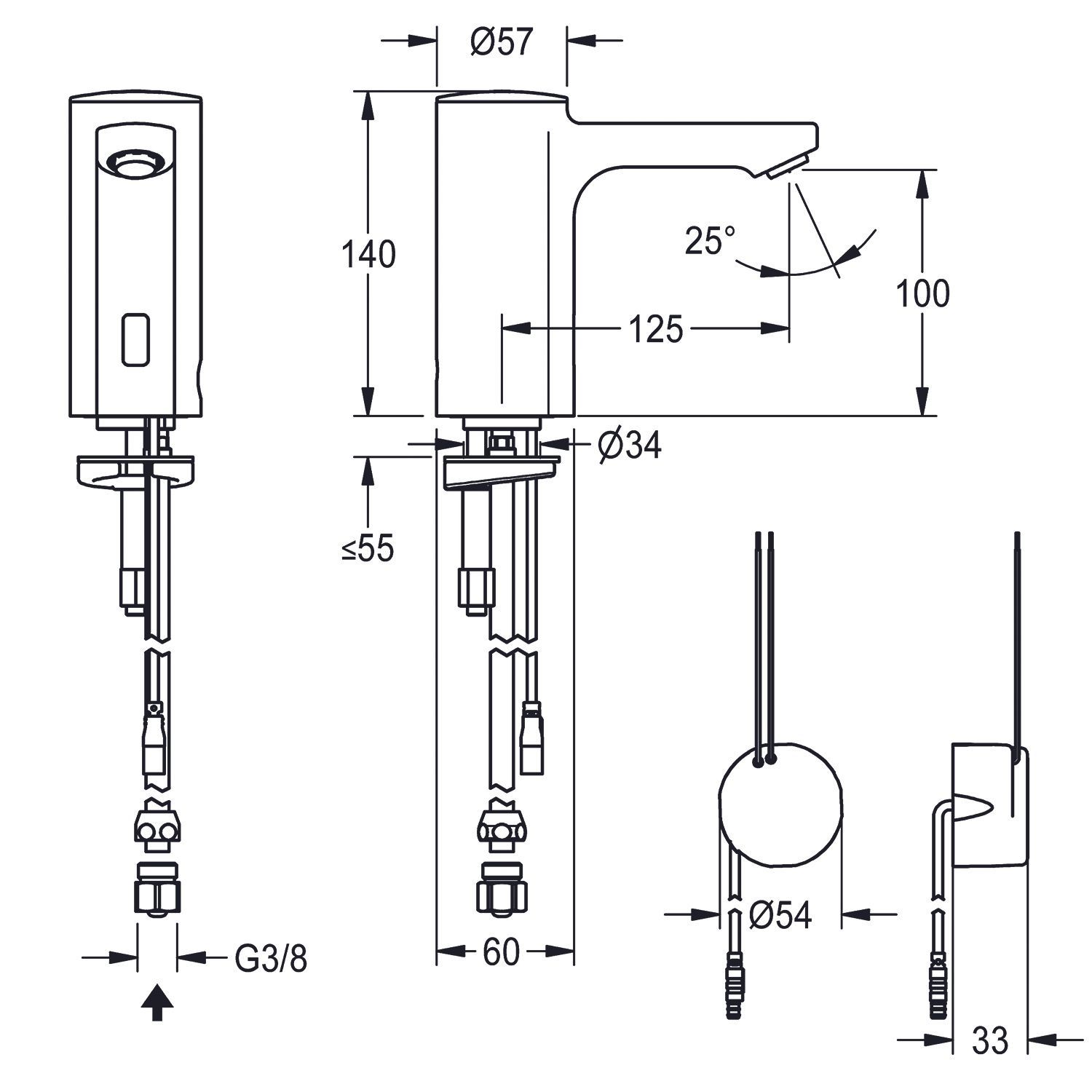 KWC KWC AR Standventil, F5, elek., o. Mischung, 5l, Rohr, UP-Netzteil 230 VAC