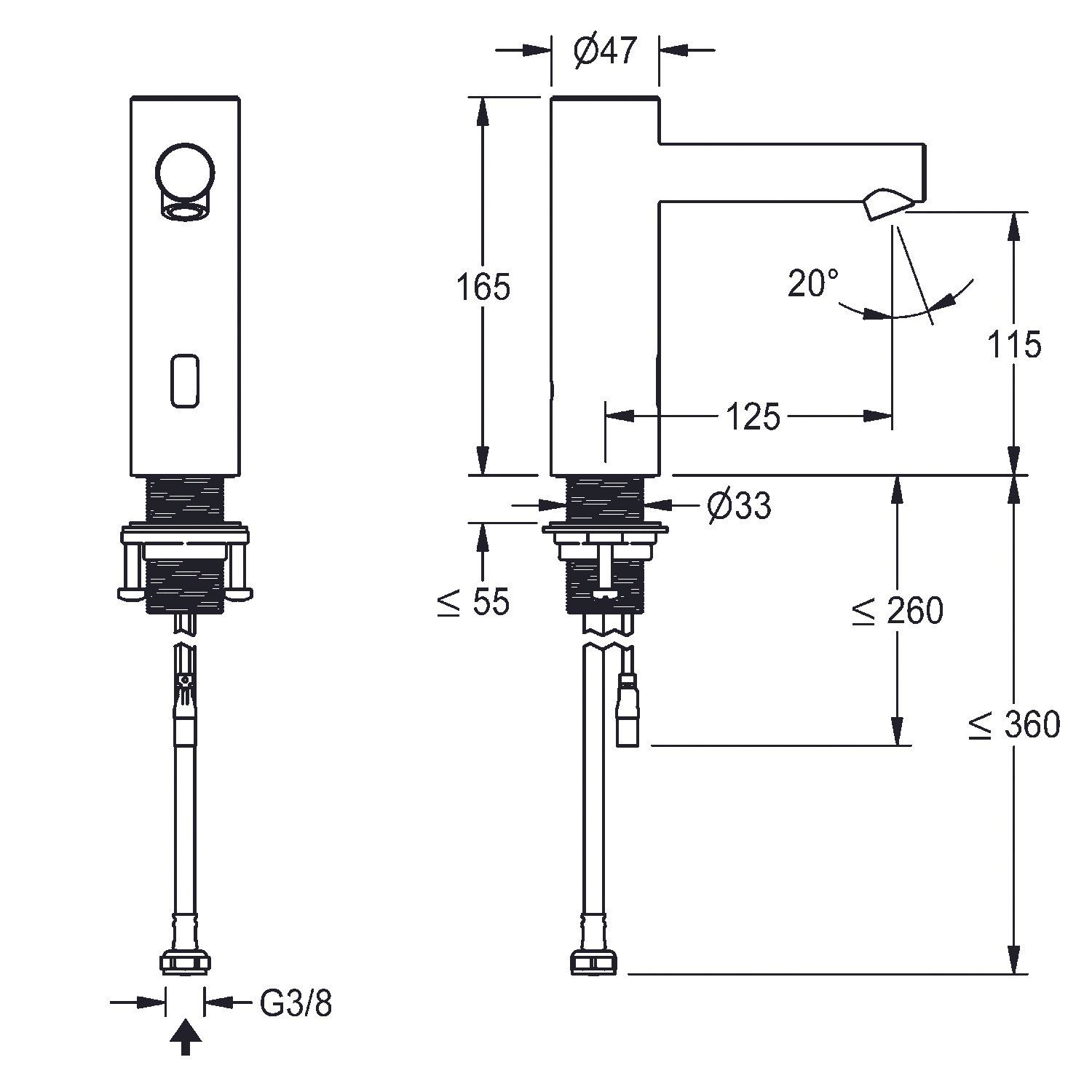 KWC KWC AR Standventil, F7, elek., o. Mischung, Edst., 5,7 l, Ausl. 125 mm, f. Batt./Net