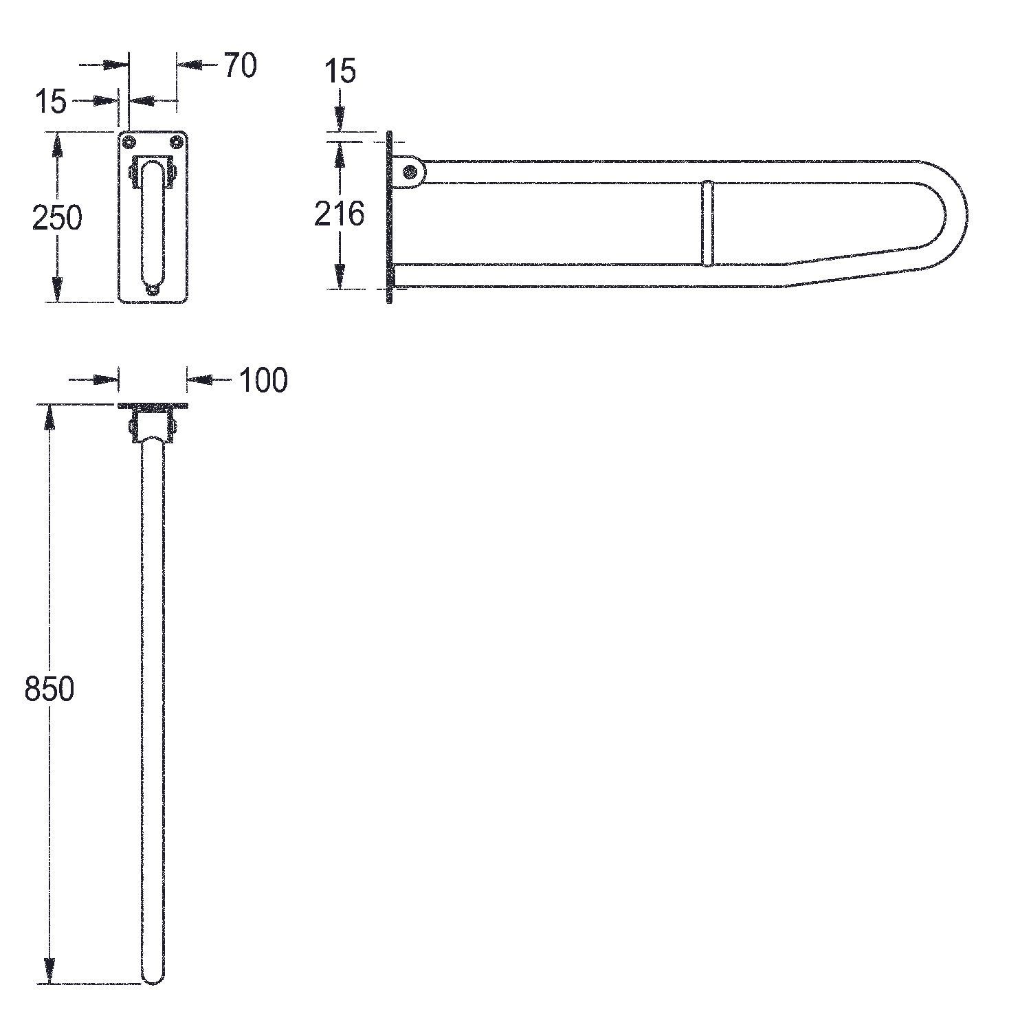 KWC KWC AR Stützklappgriff, Contina, Edelstahl, 100x250x850 mm
