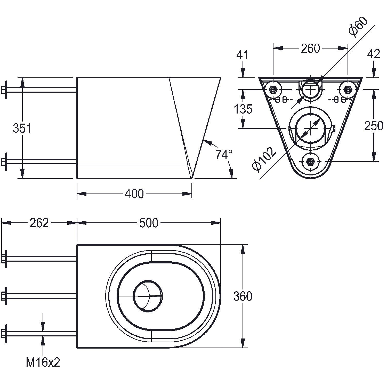 KWC KWC AR T-WC, HEAVY DUTY, Edst., Hw.-Mont., 360x350x500 mm, ohne Sitz
