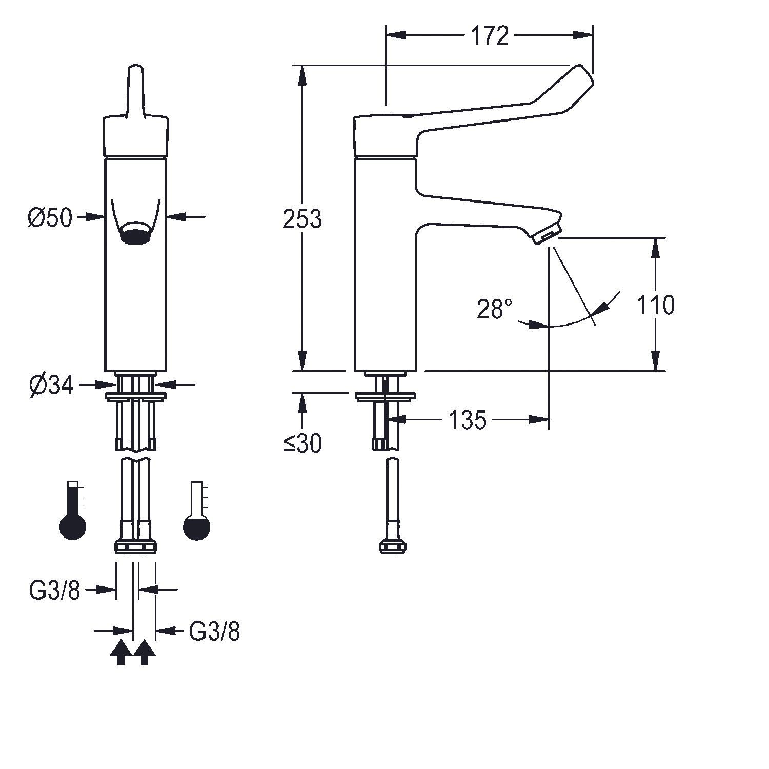 KWC KWC AR Thermostat-Standbatterie, F4, EHM, 135 mm, Armhebel