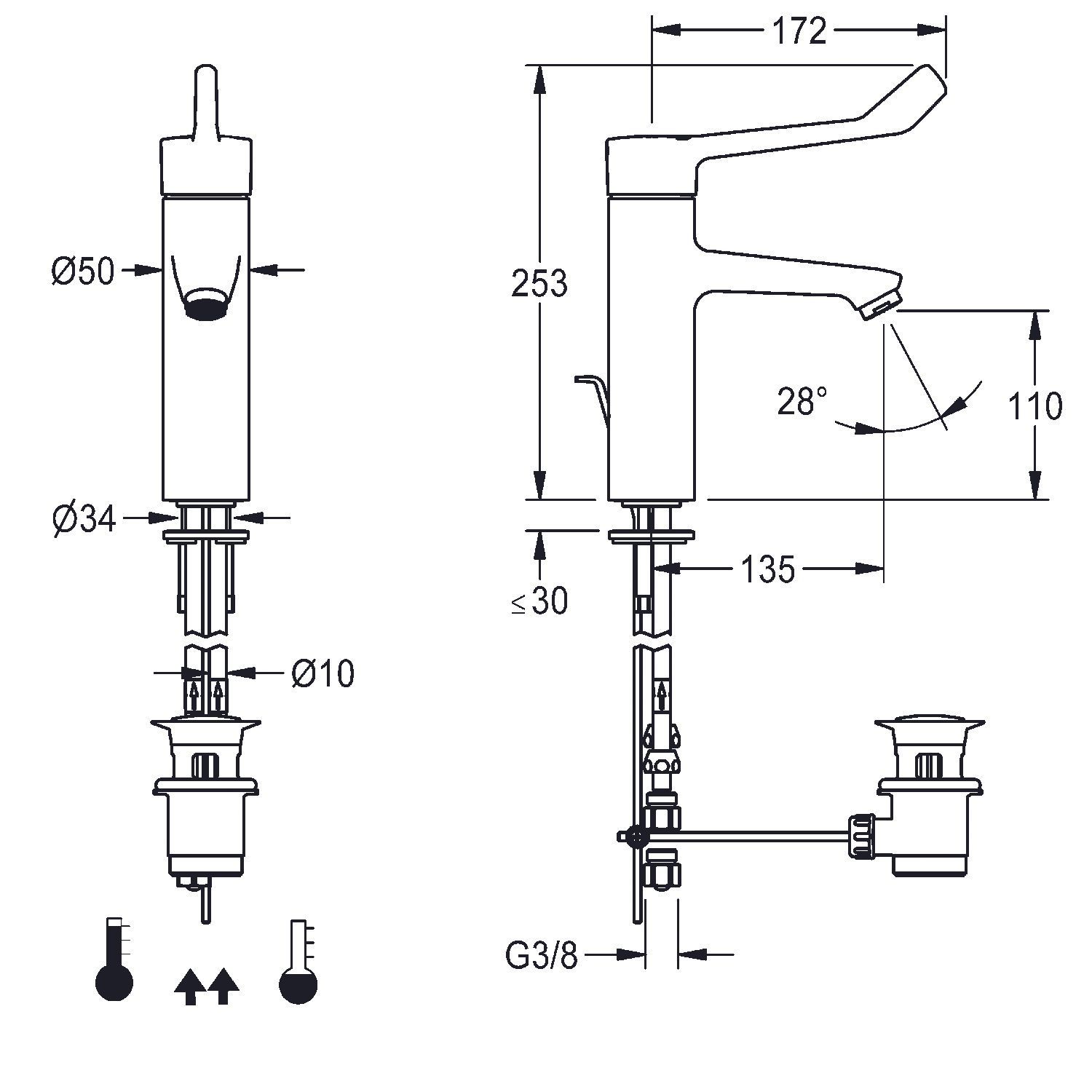 KWC KWC AR Thermostat-Standbatterie, F4, EHM, 135 mm, Armhebel, Zugstange, Rohre