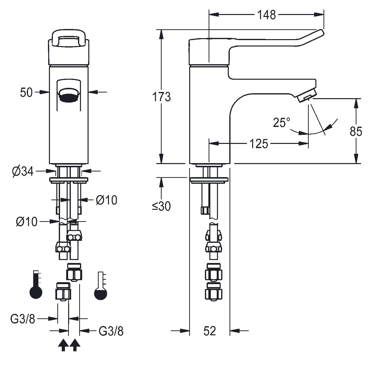 KWC KWC AR Thermostat-Standbatterie, F5, EHM, 125 mm, langer Hebel, Hygieneopt., Rohre