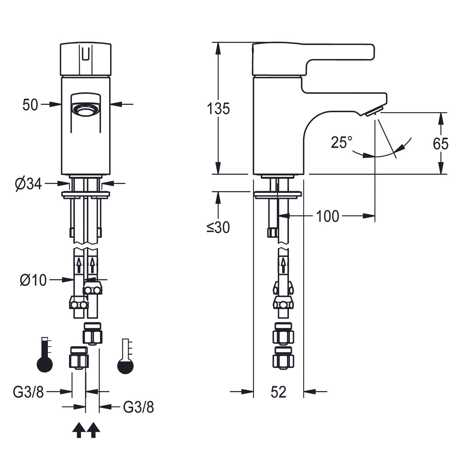 KWC KWC AR Thermostat-Standbatterie, F5, EHM, Rohre, 100 mm, Hygieneoption