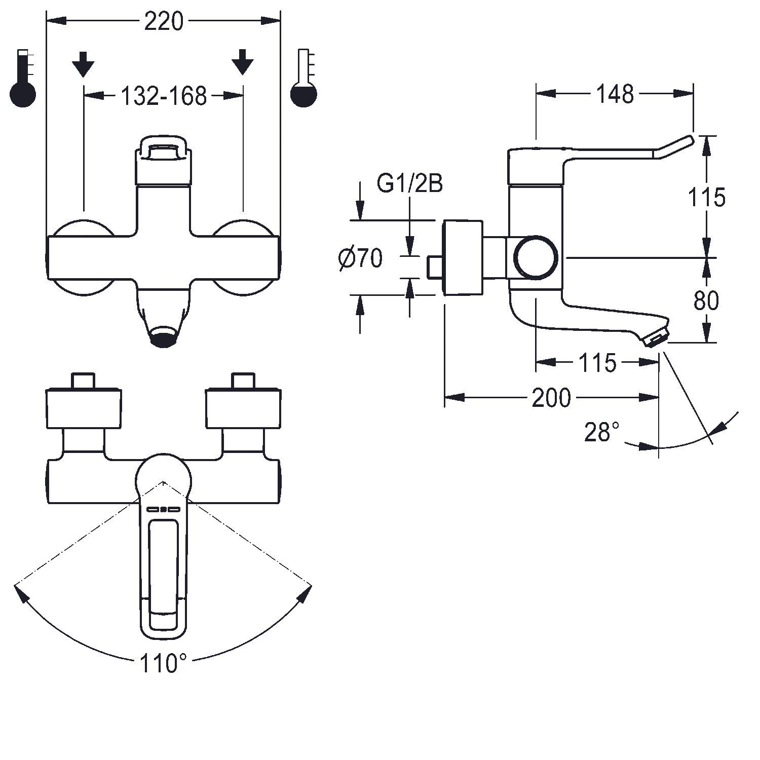 KWC KWC AR Thermostat-Wandbatterie, F4, EHM, Schwenkauslauf, 200 mm, Hebel 148 mm