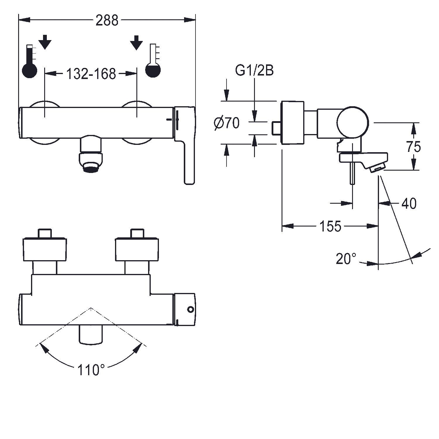 KWC KWC AR Thermostat-Wandbatterie, F5, EHM, Schwenkauslauf, 155 mm, Hygieneoption