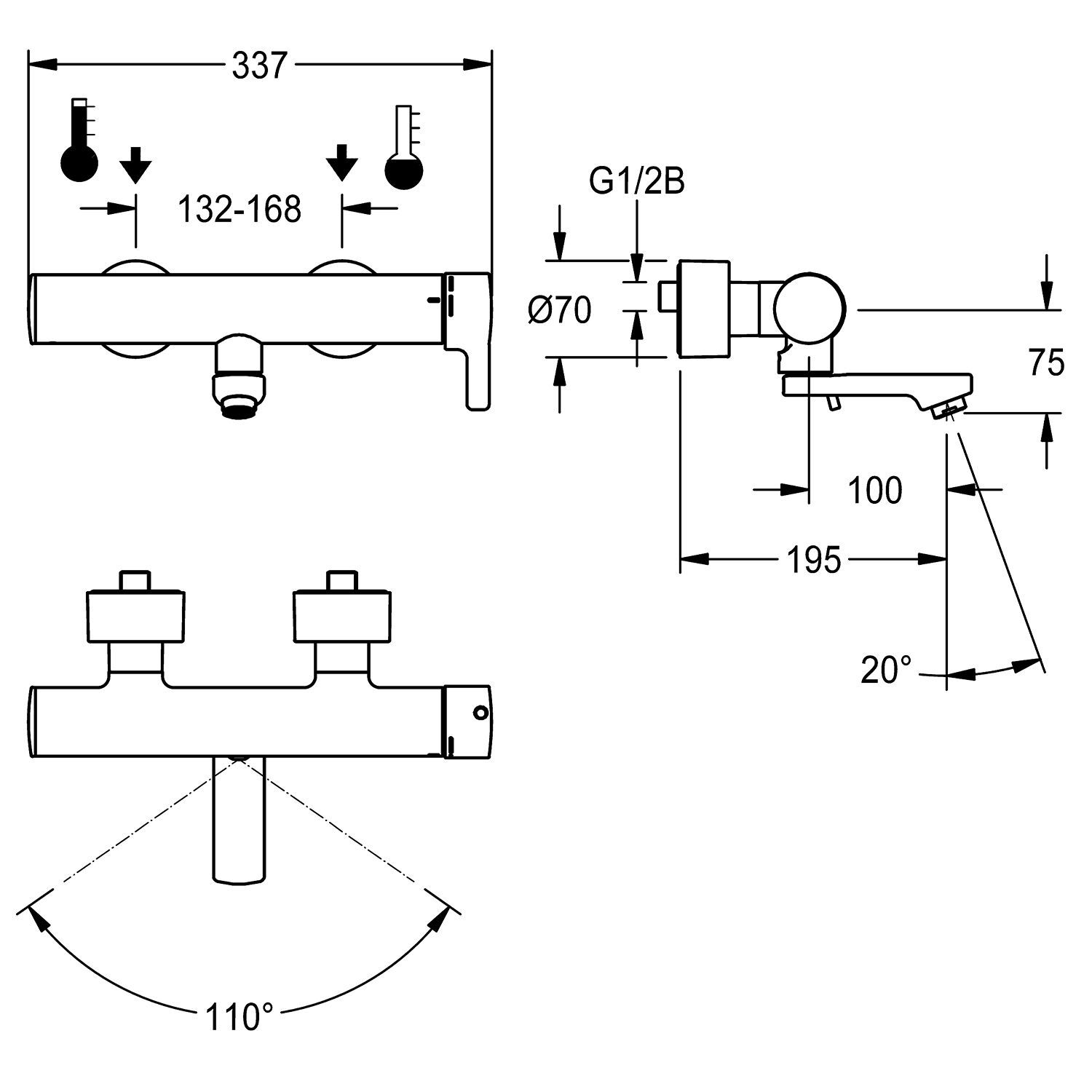 KWC KWC AR Thermostat-Wandbatterie, F5, EHM, Schwenkauslauf, 195 mm, Option C-Modul
