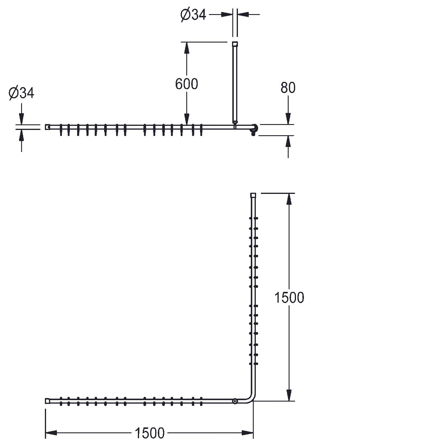 KWC KWC AR Vorhangstange, Medcare, Edelstahl, grau, 1500x600x1500 mm, Ringe weiß