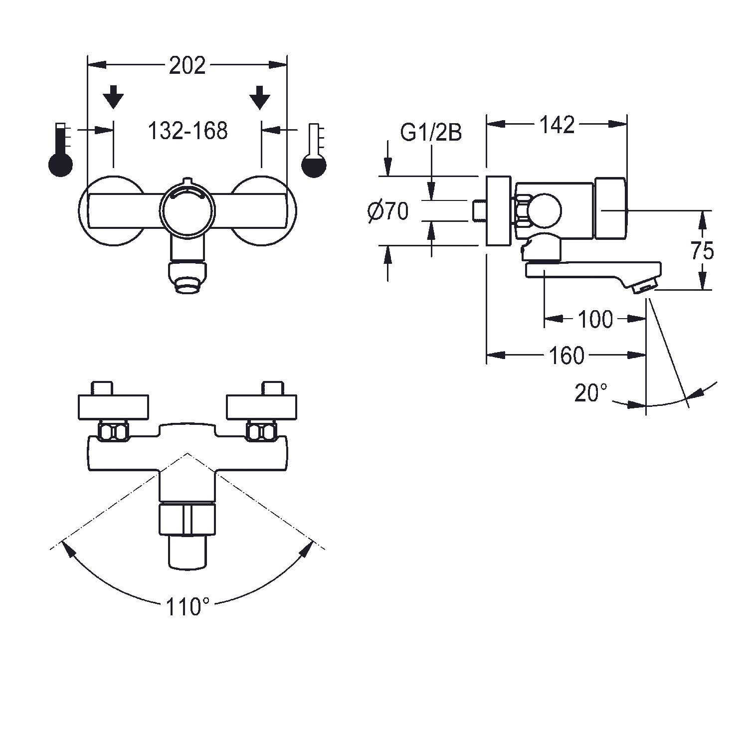 KWC KWC AR Wandbatterie, F3, hydr., Mischer, Schwenkauslauf, 160 mm, 6l