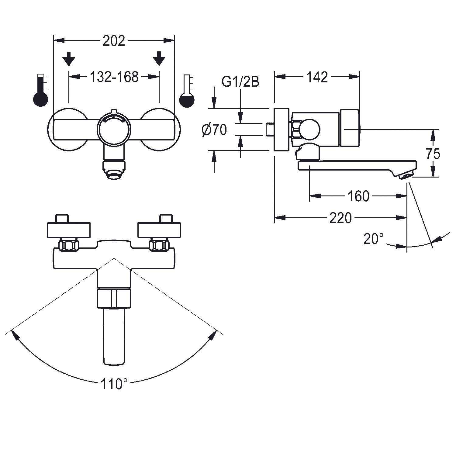 KWC KWC AR Wandbatterie, F3, hydr., Mischer, Schwenkauslauf, 220 mm, 3l
