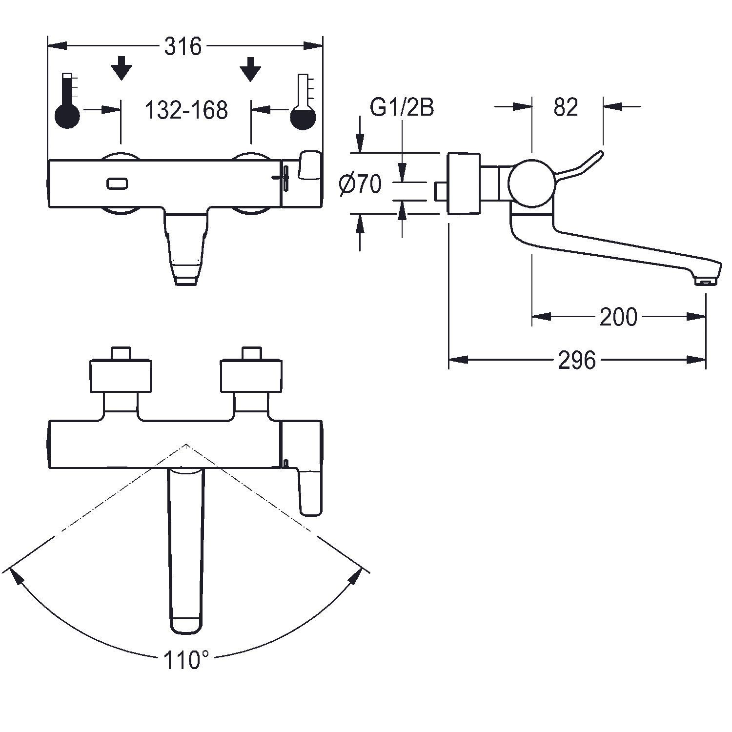 KWC KWC AR Wandbatterie, F4, elek., Thermostat, Schwenkauslauf, 296 mm, Batterie