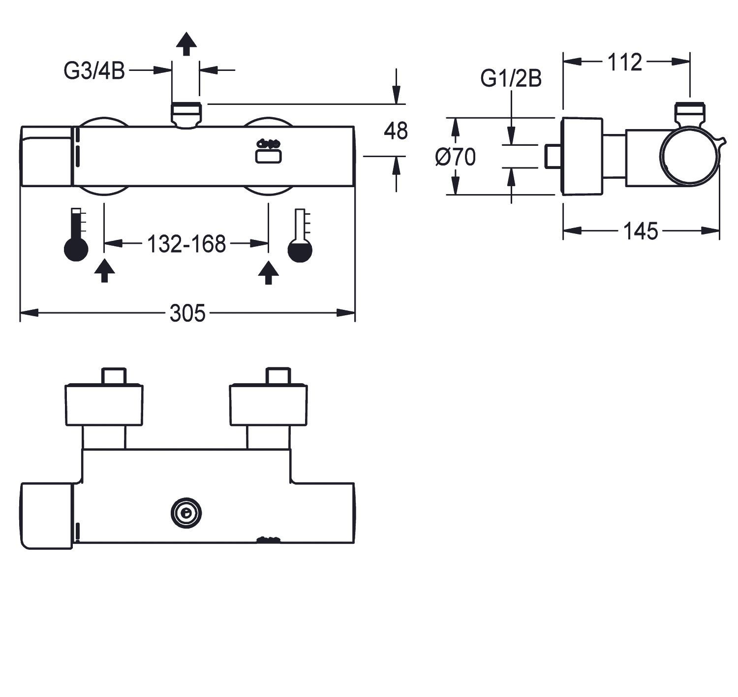 KWC KWC AR Wandbatterie, F5, elek., Thermostat, für Bogen/Duschrohr, TD, Batterie